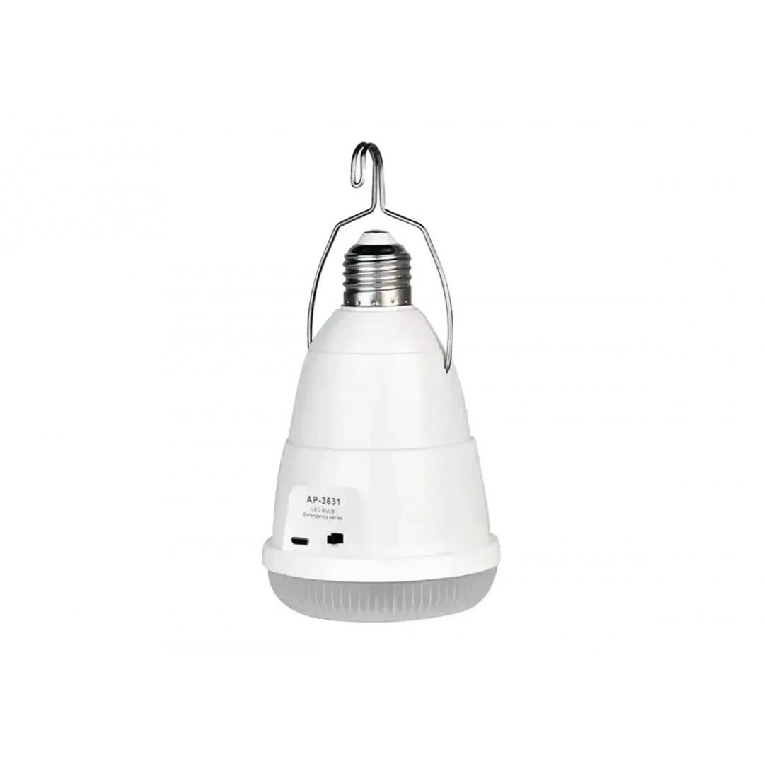 Многофункциональный перезаряжаемый кемпинговый фонарь, выполненный в формате светодиодной лампы с возможностью подвешивания. Оснащён прочным металлическим крючком, что позволяет удобно размещать его в палатке, во дворе, гараже или внутри помещения.