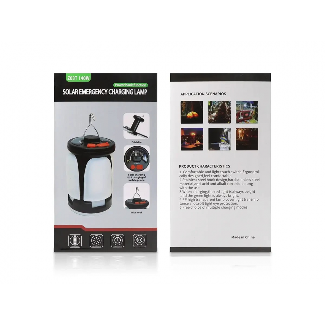 Фонарь оснащён крючком для подвешивания и подходит для использования на природе, в доме, во дворе, гараже, а также во время кемпинга и пикников. Работает от аккумулятора и заряжается через разъём micro USB от сети или power bank. Поддерживает несколько режимов свечения, включая аварийные.