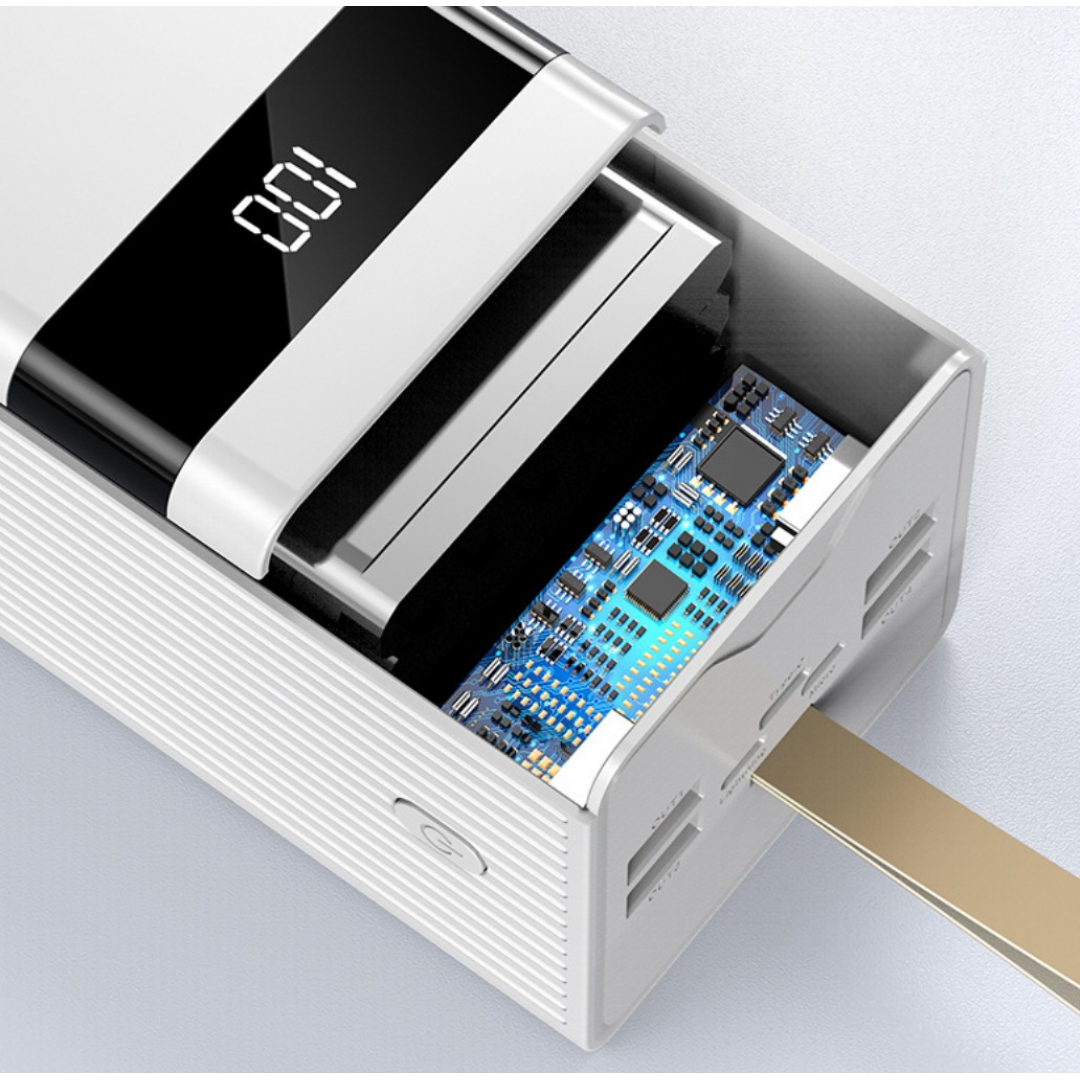 Внешний аккумулятор предназначен для автономной зарядки мобильных устройств в условиях отсутствия доступа к электросети. Оснащён цифровым дисплеем, который отображает уровень заряда в процентах, что позволяет контролировать остаток энергии в реальном времени.