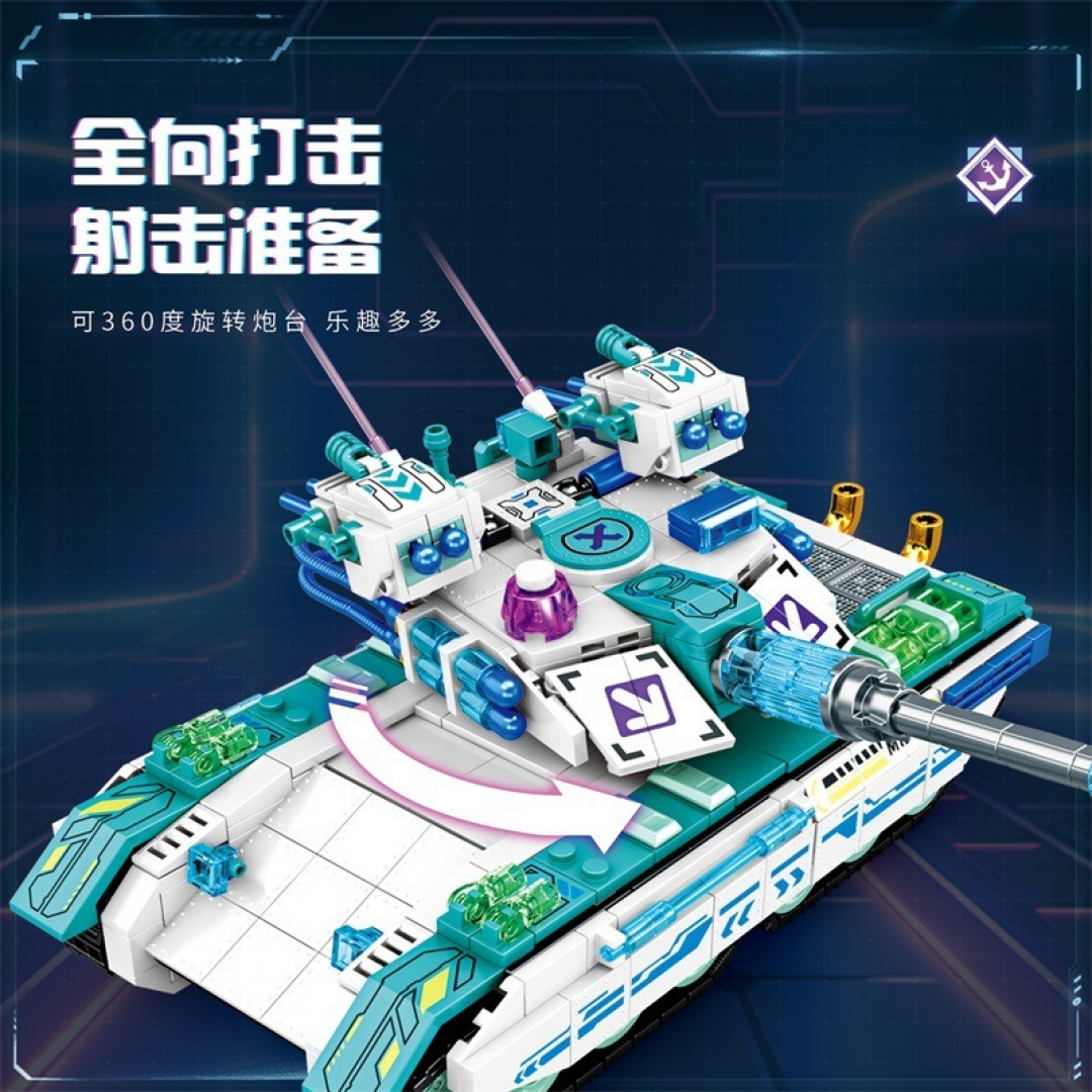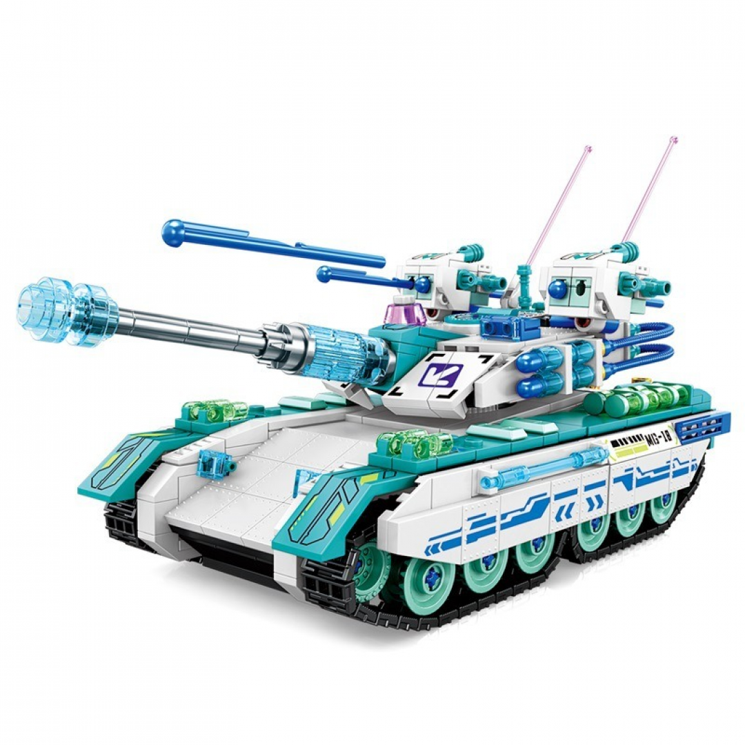 Конструктор «Танк» представляет собой сборную модель гусеничной боевой машины в футуристическом стиле. Модель выполнена с детальной проработкой корпуса, башни, вооружения и ходовой части. Конструкция предусматривает сборку танка на гусеничном шасси с подвижными элементами.