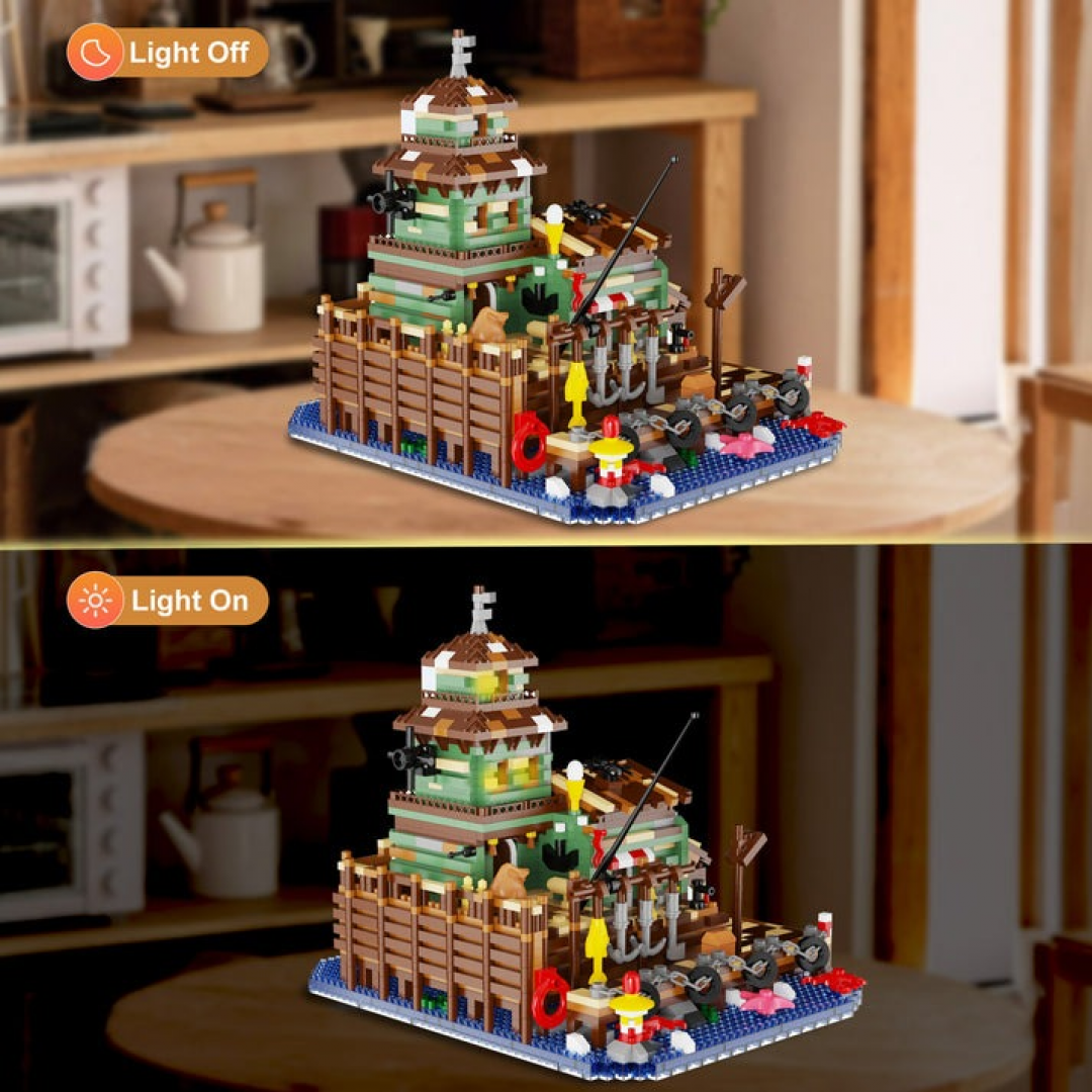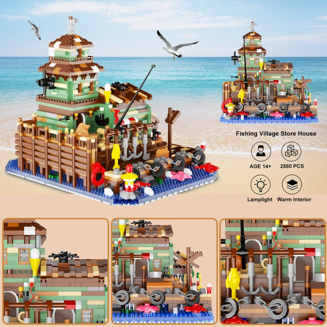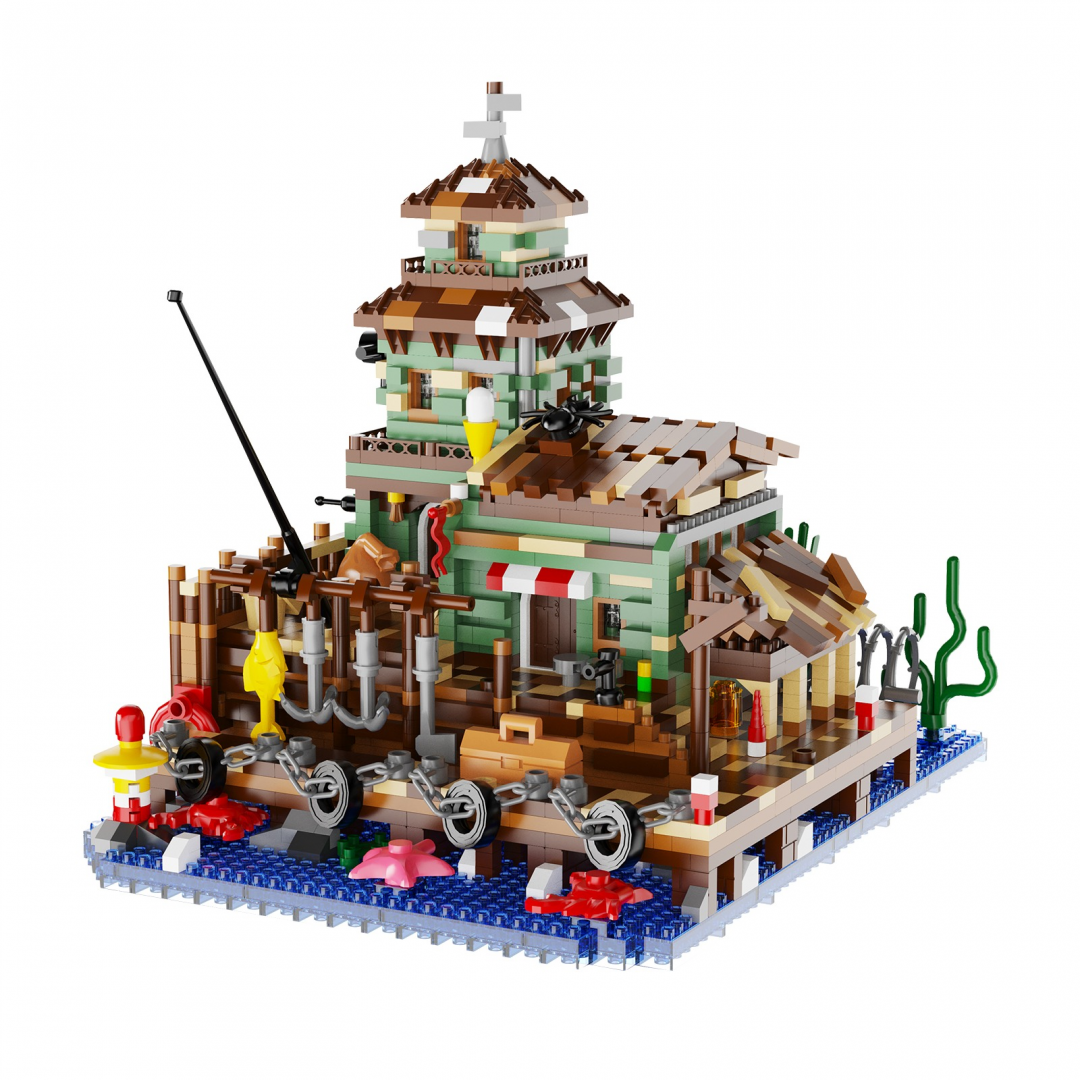 Конструктор «Дом с причалом» представляет собой набор для сборки декоративной композиции в приморской тематике. Модель изображает дом, расположенный на деревянном причале у воды, с элементами морской инфраструктуры: настилом, ограждениями, рыболовными аксессуарами и деталями береговой линии.
