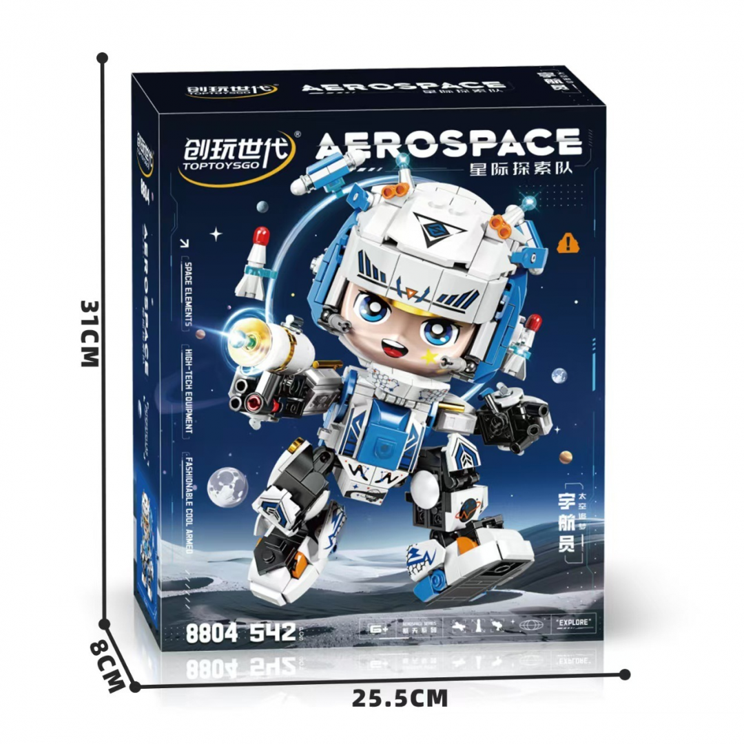 Конструктор представляет собой сборную модель астронавта в стилизованном военном скафандре. Модель выполнена в формате фигурки с увеличенной головой и детализированными элементами экипировки. Конструкция предусматривает сборку из отдельных деталей с формированием подвижной фигуры.