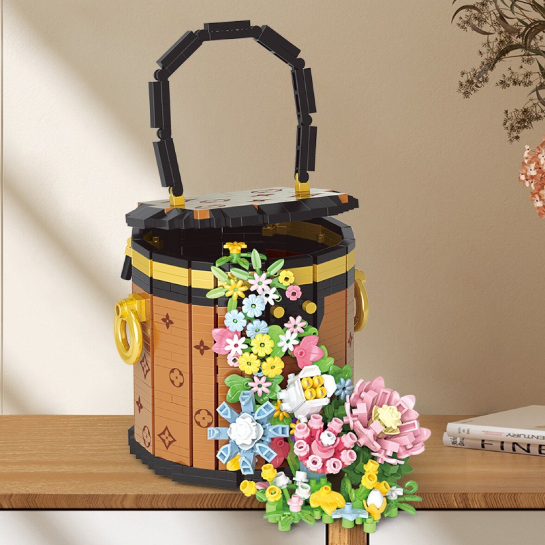 Декоративный конструктор в виде объёмной композиции с цветами, оформленной вокруг стилизованного контейнера с ручкой. Модель собирается из отдельных элементов и представляет собой самостоятельный интерьерный объект, сочетающий цветочную композицию и декоративную форму основы.