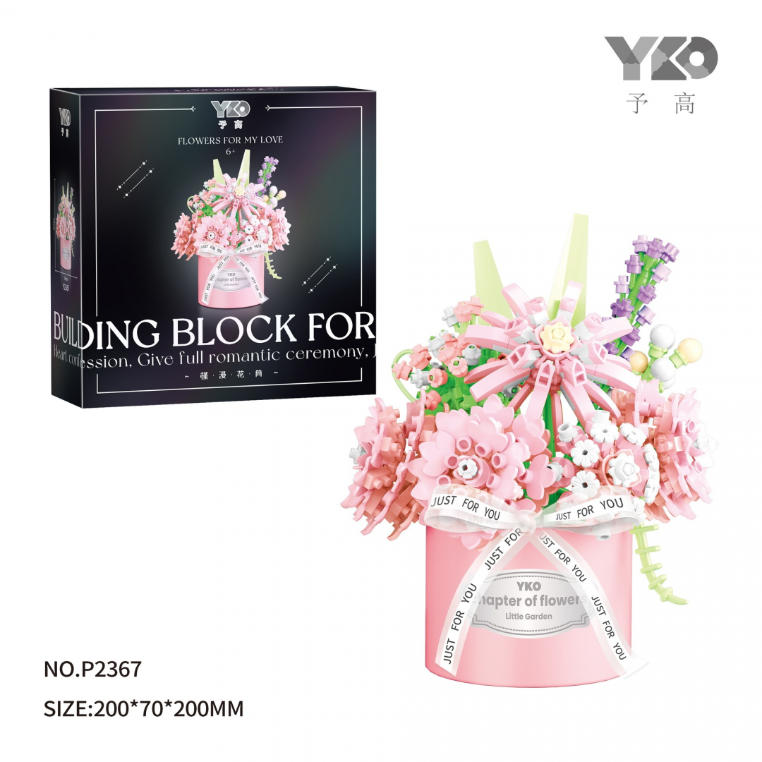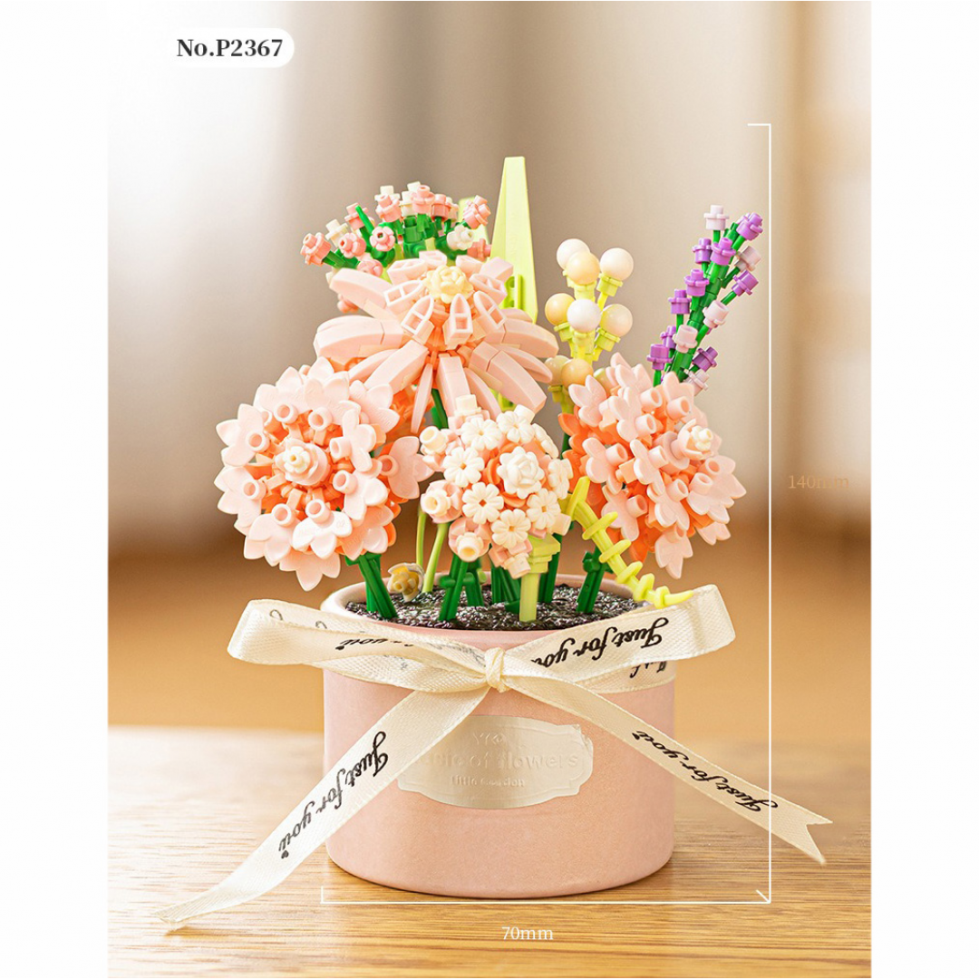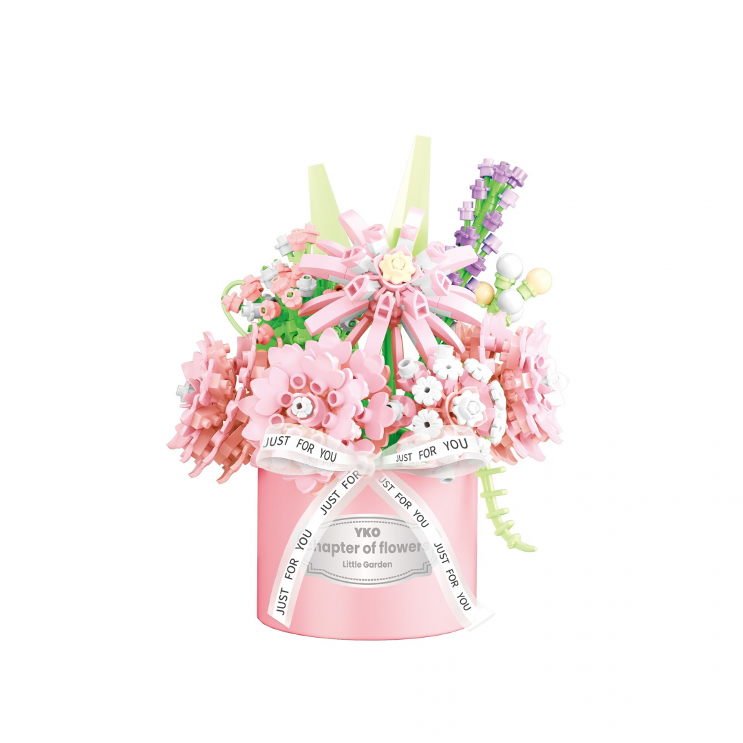 Декоративный конструктор в виде букета розовых гвоздик в круглой коробке-кашпо. После сборки изделие используется как интерьерный декор. Подходит для подарка и длительного размещения без ухода.