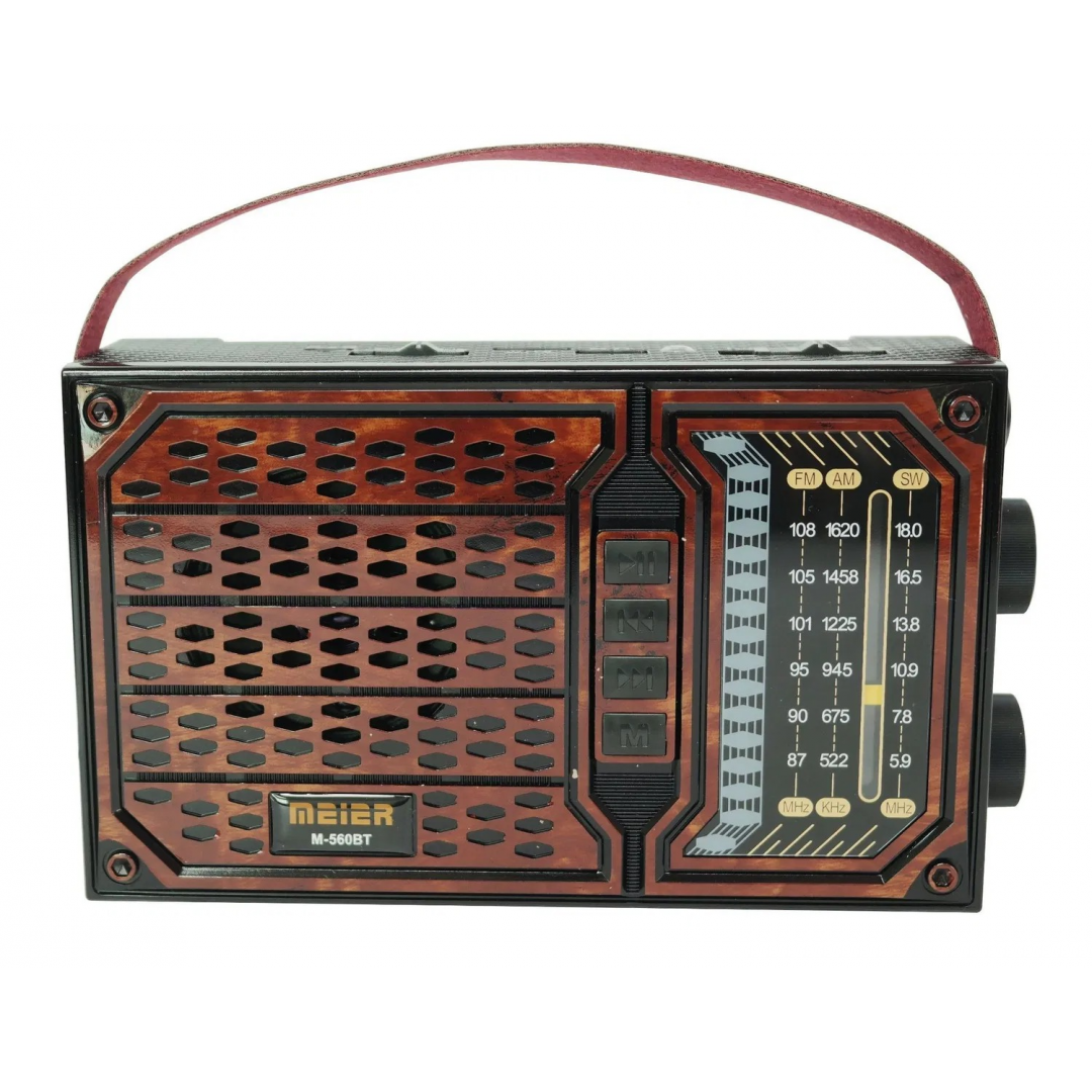 Портативный радиоприёмник MEIER M-560BT предназначен для приёма радиостанций и воспроизведения аудиофайлов с USB-накопителей и карт памяти. Устройство выполнено в ретро-дизайне и подходит для использования дома, в поездках и на отдыхе на природе. Благодаря аккумуляторному питанию и возможности работы от сети радиоприёмник может использоваться как переносной или стационарный.