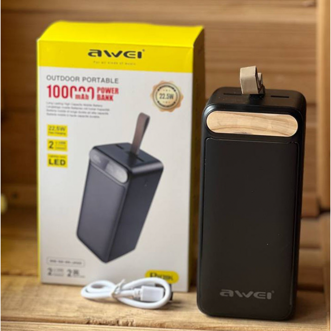 Повербанк Awei P101K, 100000 mAh, с быстрой зарядкой, с фонариком