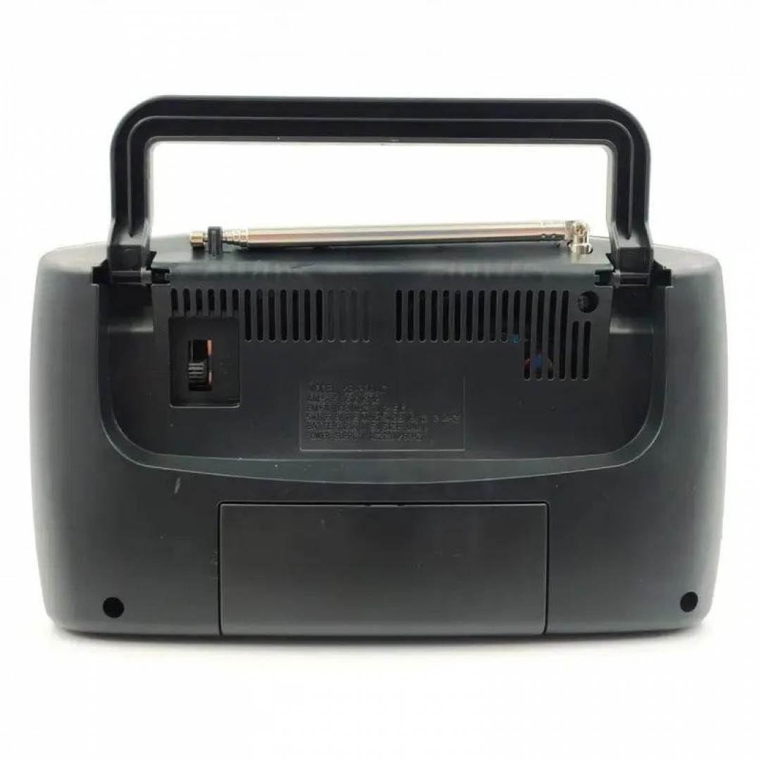 Модель подходит для использования дома, на даче или в поездках. Устройство работает от сети 220 В или от двух батареек типа R20, что позволяет использовать его автономно. Оснащено двумя динамиками и разъемом для подключения наушников 3,5 мм.