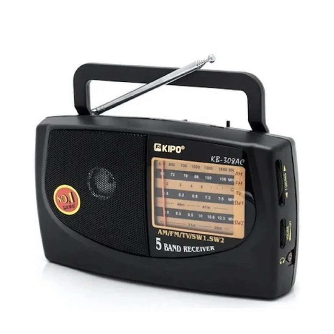 Радиоприемник Kipo KB-308 AC предназначен для прослушивания радиостанций и воспроизведения аудиофайлов формата MP3 с USB-накопителей и SD-карт. Поддержка пяти диапазонов обеспечивает прием сигналов AM, FM, TV и коротковолновых диапазонов SW1–SW2.