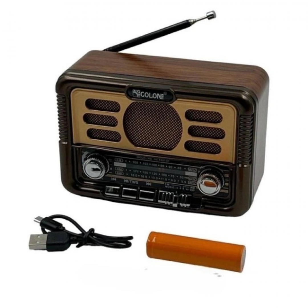 Радиоприемник Golon RX-BT6061S сочетает функции приема радиостанций и воспроизведения аудио по Bluetooth. Устройство выполнено в компактном корпусе с ретро-дизайном и подходит для использования дома и на природе.