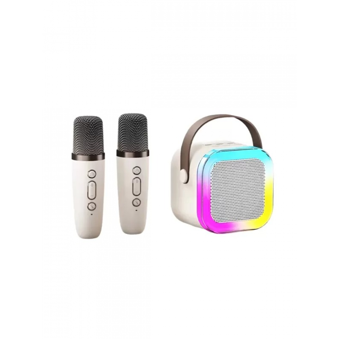 Портативная колонка караоке K52‑2 предназначена для воспроизведения музыки и проведения вокальных сессий. Устройство поддерживает беспроводное соединение Bluetooth, воспроизведение с USB‑накопителей и SD‑карт, приём FM‑радиостанций и проводное подключение через AUX‑вход. Колонка оснащена встроенной подсветкой и двумя беспроводными микрофонами, а также функциями изменения голоса.