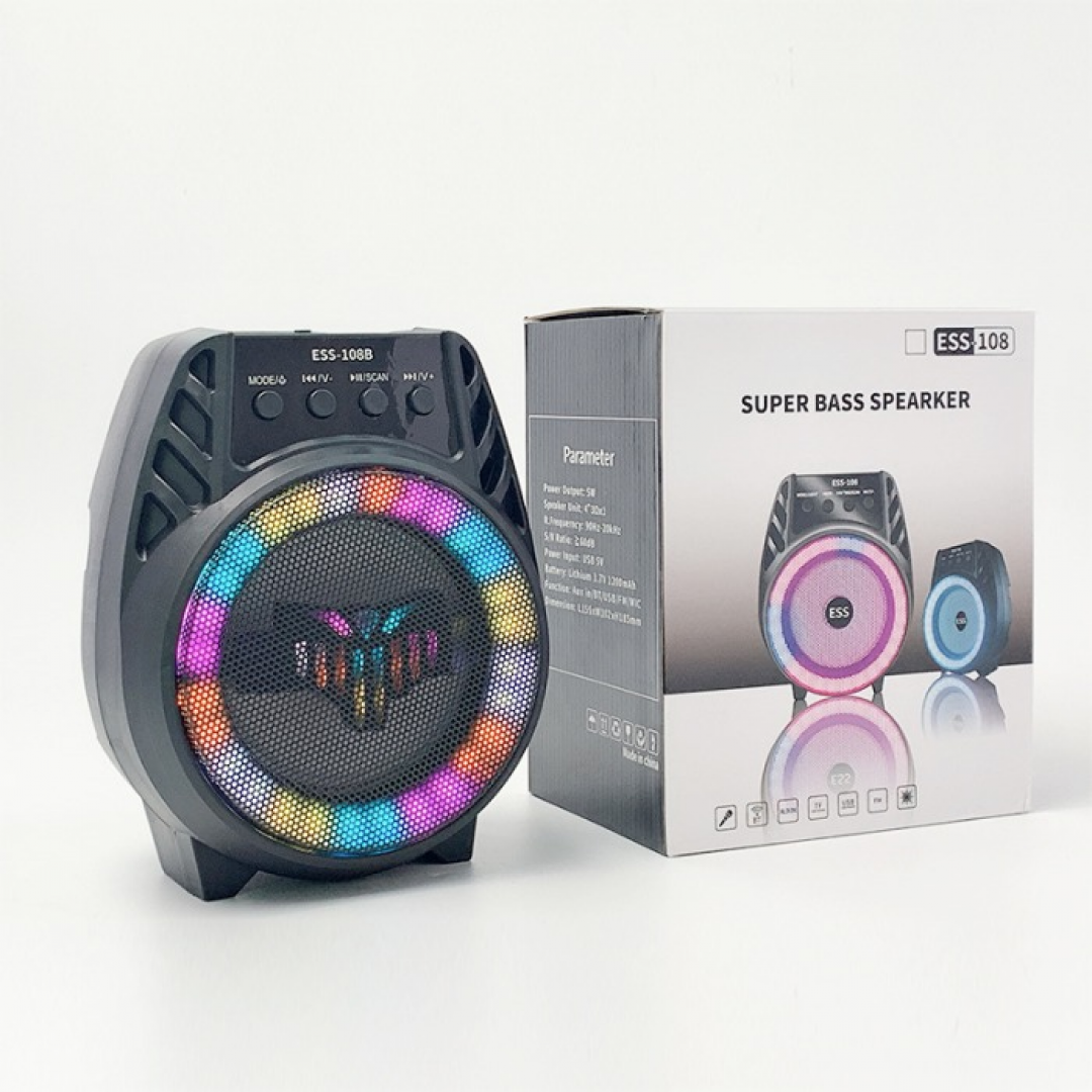 Портативная колонка ESS‑108B, Bluetooth/USB/SD/FM/AUX, светомузыка