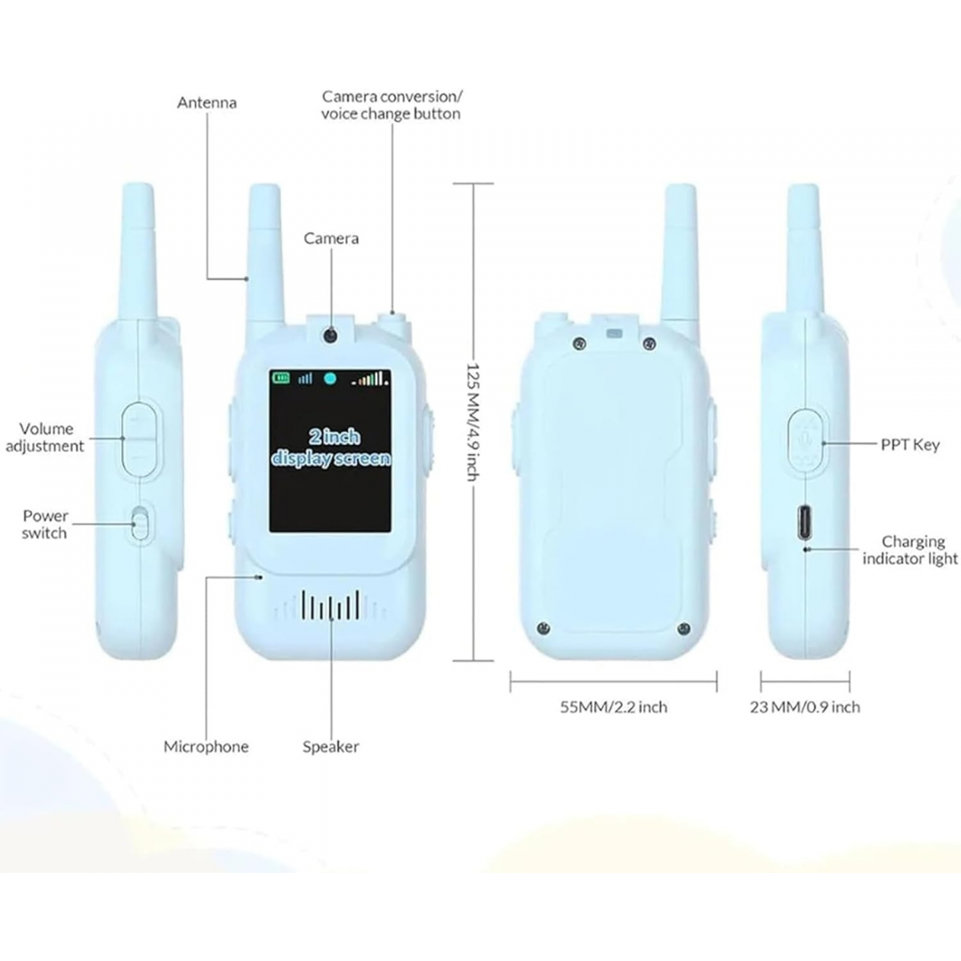 Рация детская с функцией видеосвязи и фото, 0696, комплект 2 шт, экран 2 дюйма, зарядка Type-C