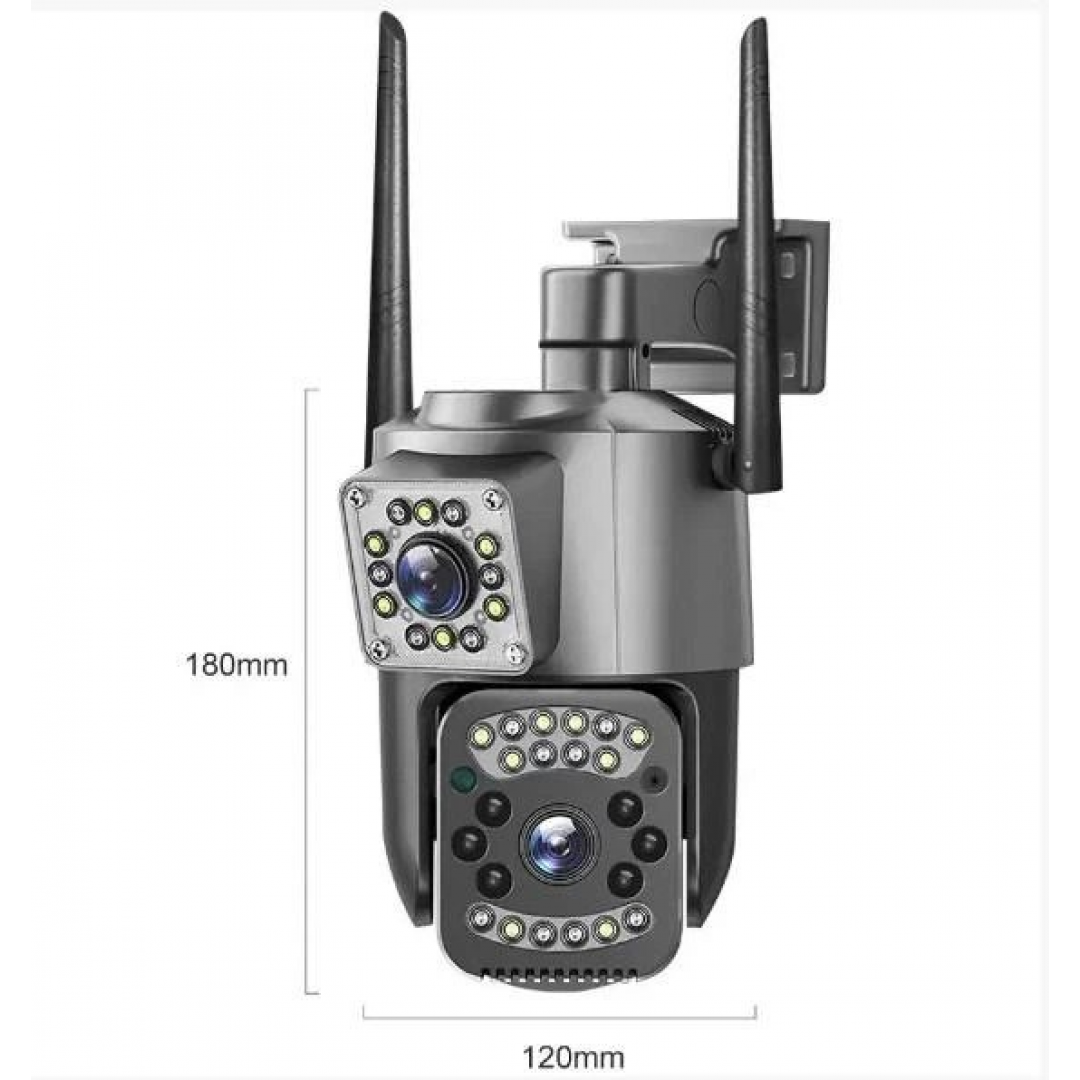 Уличная смарт-камера TS-32W оснащена двойным объективом для одновременного широкого и детального обзора территории. Модель поддерживает подключение по WiFi и через проводной сетевой порт RJ45. Камера обеспечивает панорамный поворот до 270° и наклон до 90°, что позволяет контролировать большую зону без слепых участков.