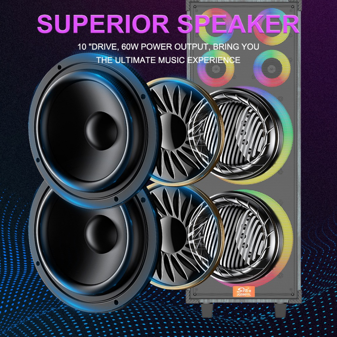 Портативная акустическая система ZQS9011L предназначена для воспроизведения музыки и проведения караоке. Модель оснащена встроенным аккумулятором и поддерживает подключение по Bluetooth 5.0, а также воспроизведение файлов с USB-накопителей и карт памяти TF (SD). Встроенный FM-тюнер позволяет использовать устройство как радиоприёмник.