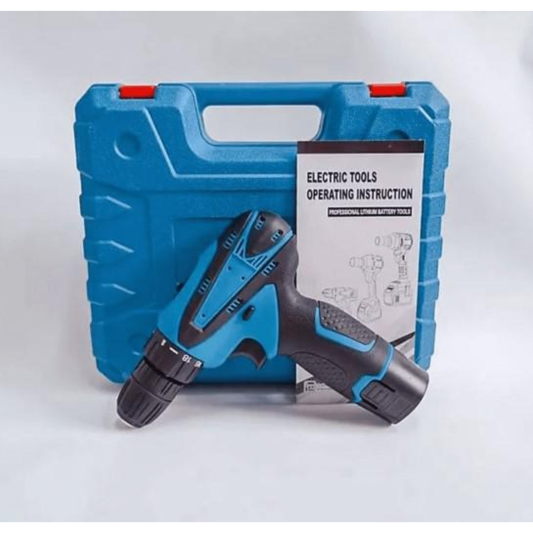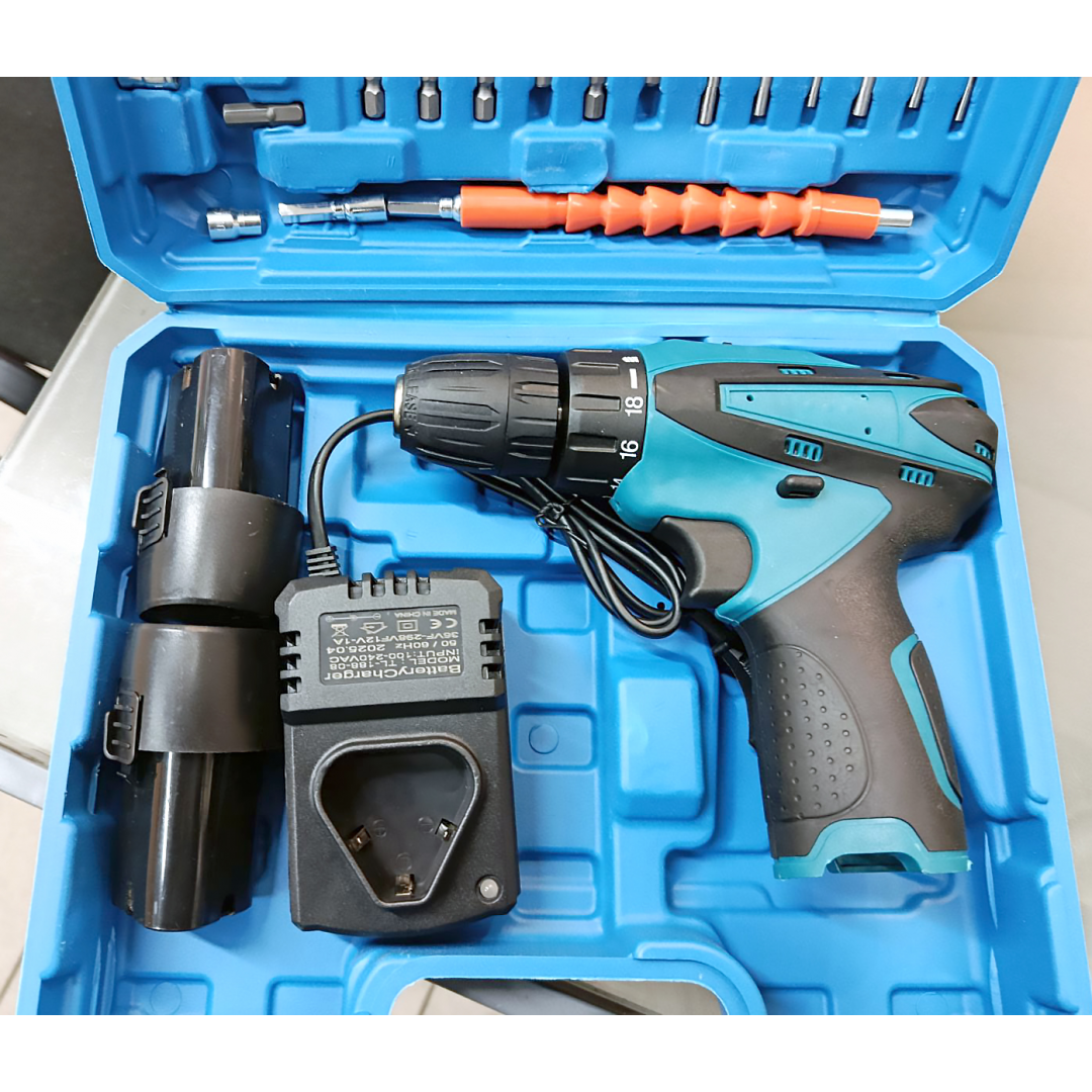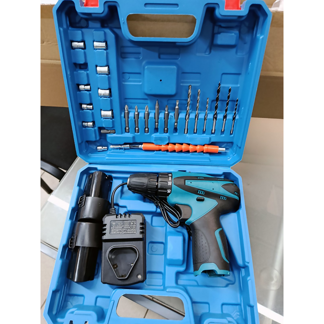 Шуруповерт аккумуляторный D-15, 12V, 2 аккумулятора, с набором инструментов в кейсе, голубой