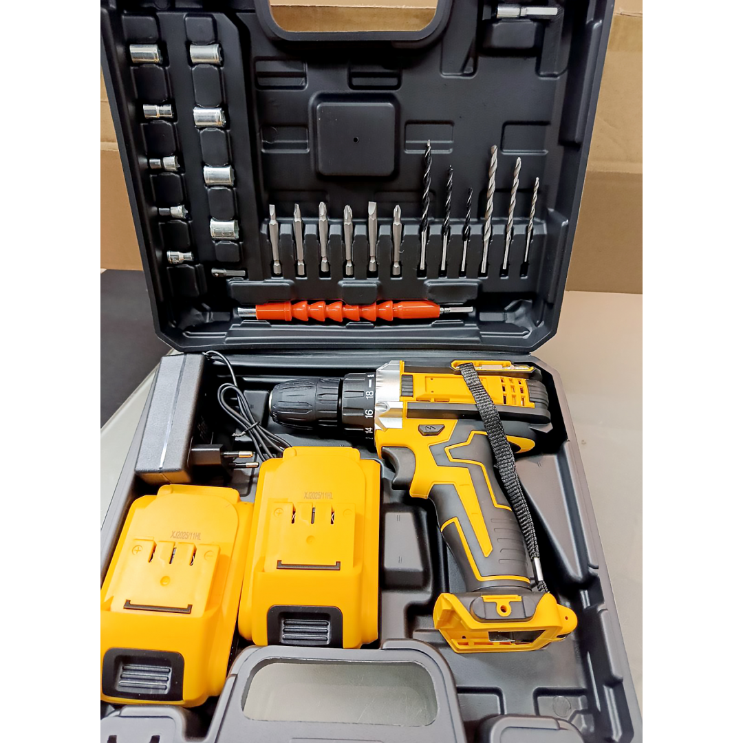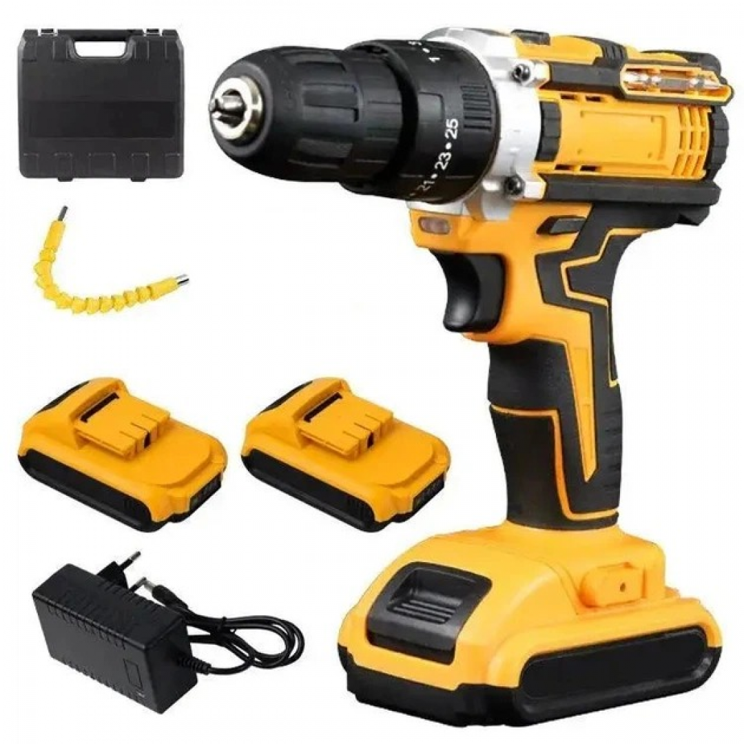 Шуруповерт аккумуляторный D-1, 24V, 2 аккумулятора, с набором инструментов, желтый
