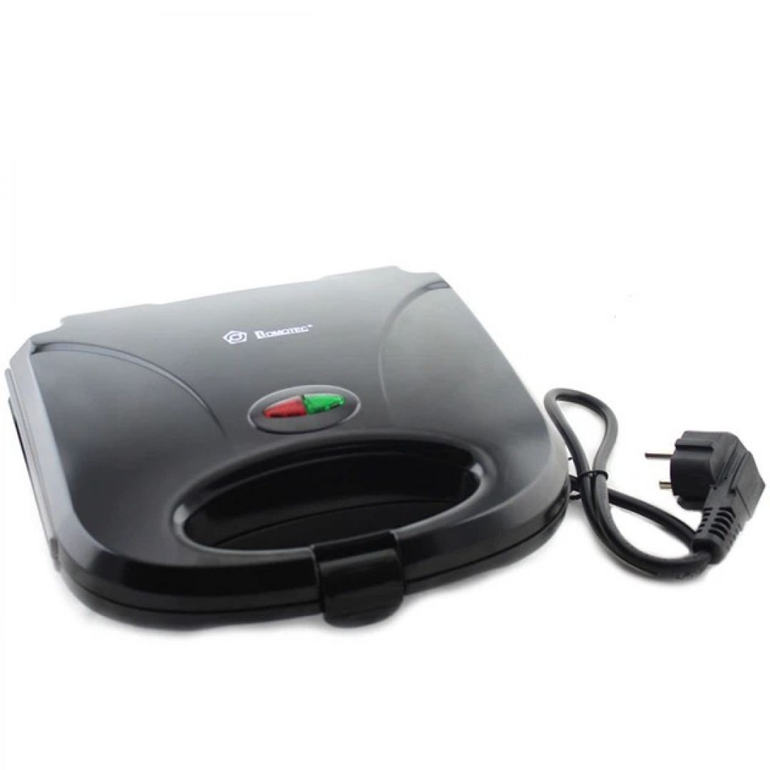 Сендвичница Domotec MS-7709 — кухонное электрическое устройство для приготовления горячих бутербродов и панини. Прибор оснащён двумя нагревательными панелями с антипригарным покрытием, что обеспечивает равномерное прожаривание продуктов и облегчает последующую очистку. Устройство работает от сети 220 В и предназначено для домашнего использования на кухне.