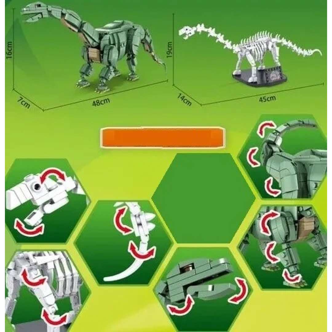 Конструктор «Бронтозавр + окаменелости» представляет собой развивающий набор из 731 пластиковой детали для сборки модели бронтозавра и его окаменелостей. Набор предназначен для сборки реалистичной трехмерной модели динозавра и сопровождающих элементов, что делает процесс интересным и познавательным. Конструктор развивает логическое мышление, пространственное восприятие, внимание и мелкую моторику у детей и подростков.