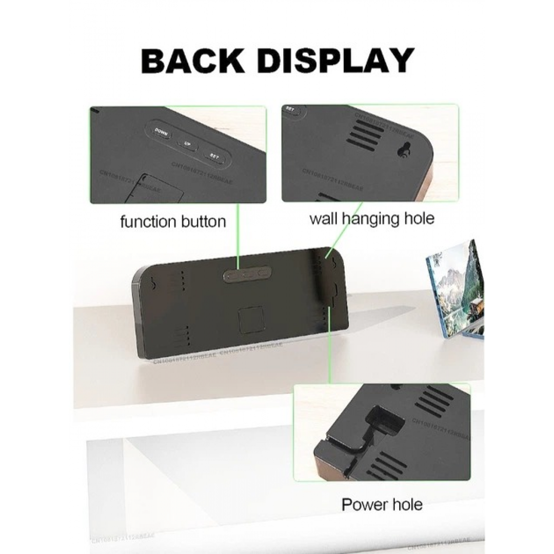Модель поддерживает два независимых будильника с возможностью настройки на 5, 6 или 7 дней недели. Предусмотрены 10 уровней яркости и функция автоматической регулировки яркости. Дополнительно доступны функции секундомера и таймера. Управление осуществляется с помощью пульта дистанционного управления. Часы работают от сети, имеется резервная батарейка для сохранения настроек при отключении питания.
