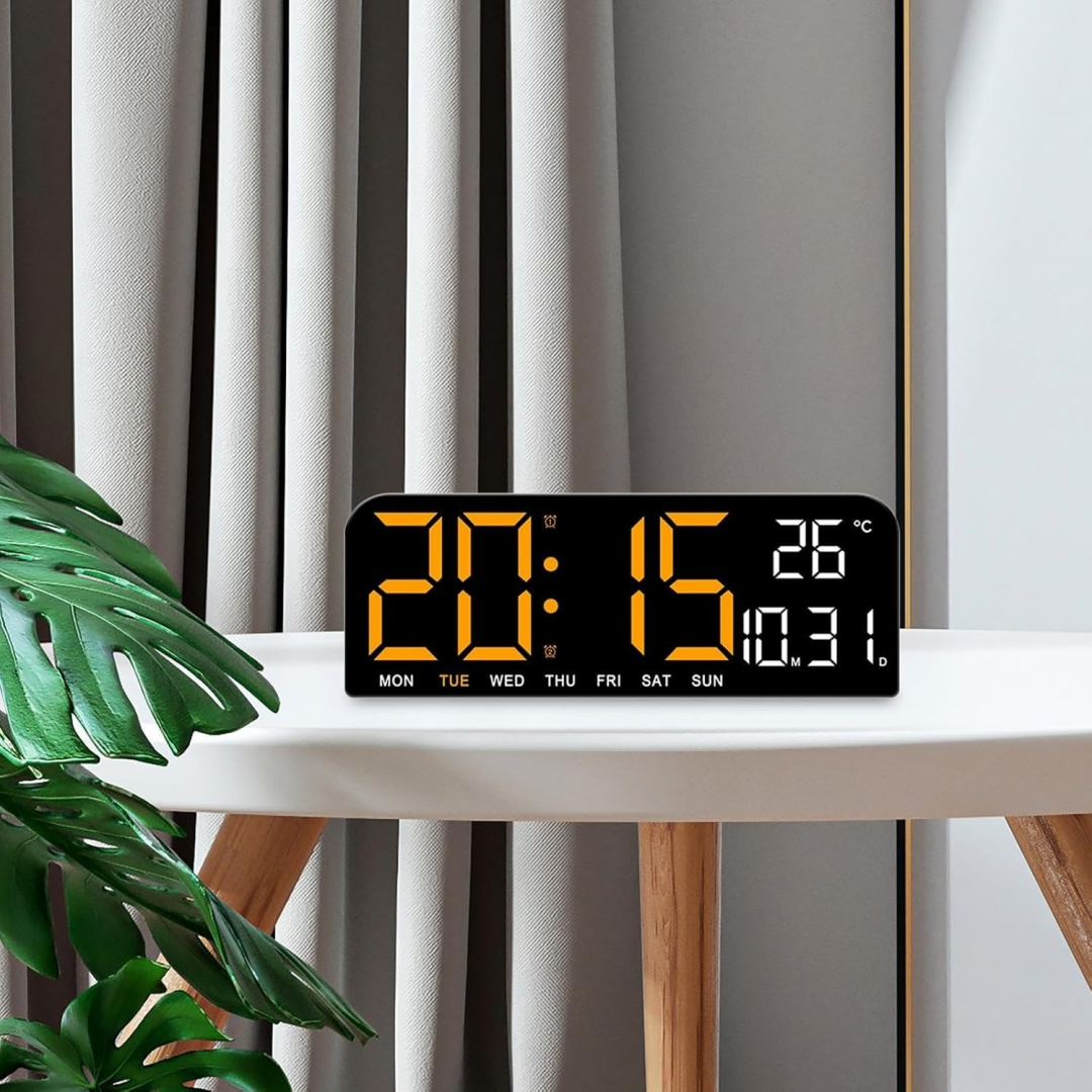Часы настольные-настенные GH0707, с оранжевой и белой подсветкой, температурой, будильником