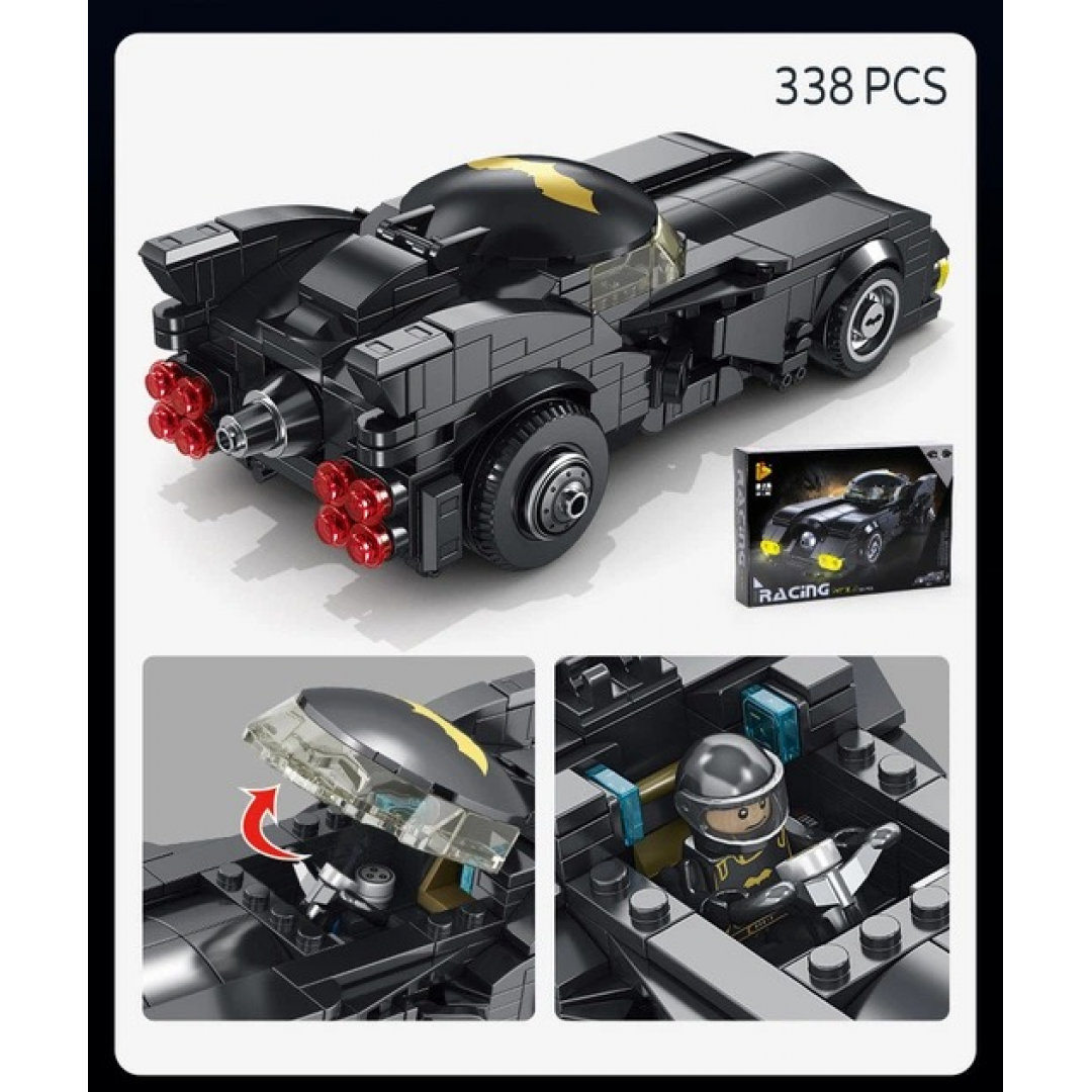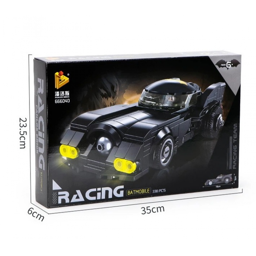 Детский конструктор представляет собой набор пластиковых блочных элементов для сборки модели супергеройского автомобиля «Бэтмобиль», выполненного в тёмной цветовой гамме. Набор включает около 338–347 элементов и пошаговую инструкцию, что позволяет собрать трёхмерную модель транспорта из популярной вселенной супергероев. Сборка способствует развитию творческого мышления, внимания и мелкой моторики у ребёнка.