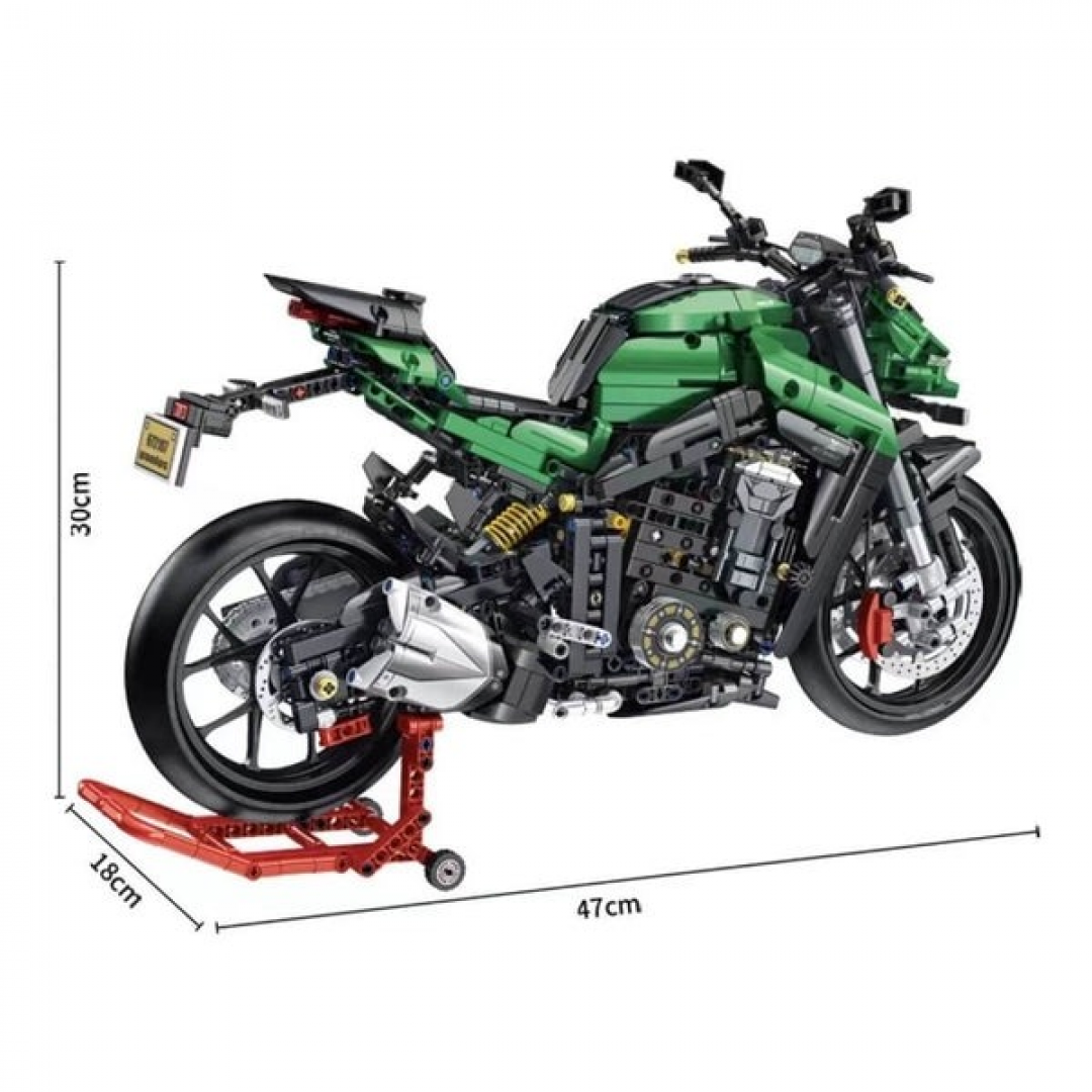 Детский конструктор представляет собой крупный набор пластиковых элементов для сборки модели скоростного мотоцикла Kawasaki Z1000 в масштабе приблизительно 1:5. Набор включает 2089 деталей и инструкцию по сборке. Сборка способствует развитию творческого мышления, внимания, усидчивости и мелкой моторики у ребёнка, а готовая модель подходит для демонстрации или игр с другими транспортными моделями.
