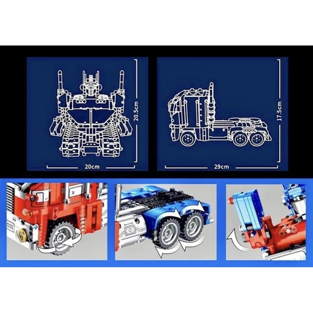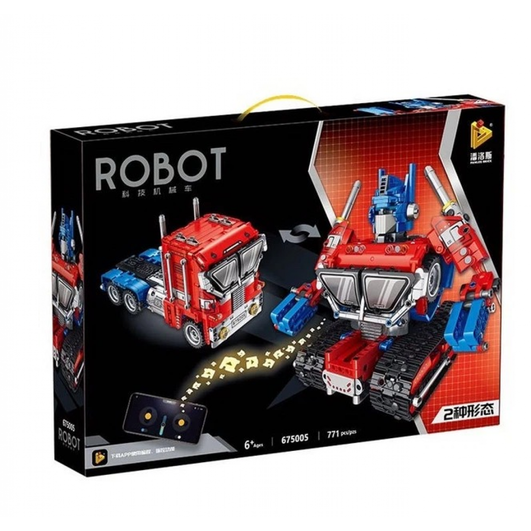 Детский конструктор представляет собой набор пластиковых блочных элементов для самостоятельной сборки модели робота-трансформера Оптимус Прайм, который может перевоплощаться в транспортное средство и обратно. Набор включает 771 деталь, аккумулятор, USB-кабель для зарядки, пульт дистанционного управления и инструкцию по сборке. Готовую модель можно управлять с помощью пульта или мобильного приложения через Bluetooth, а также программировать её движения через специальное приложение.