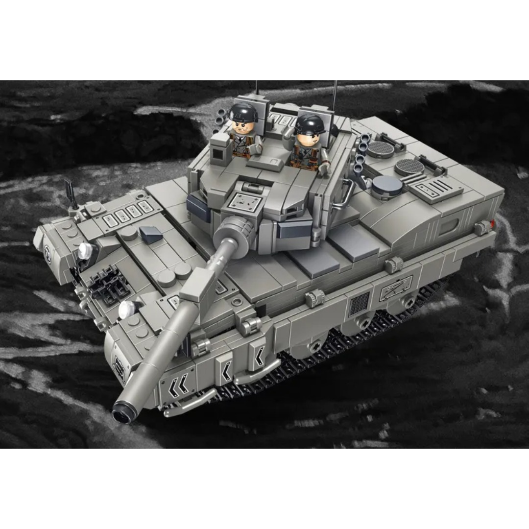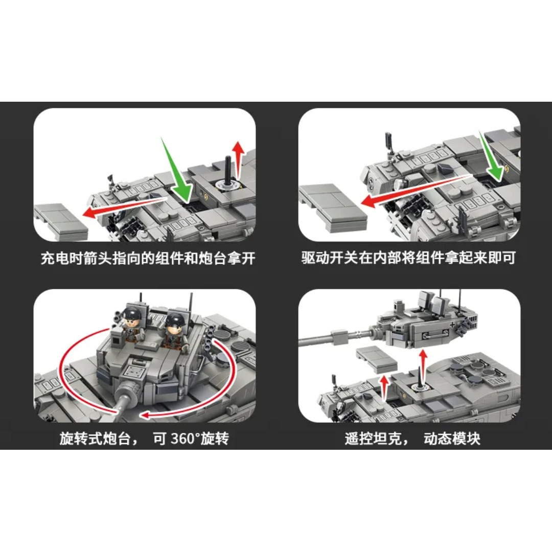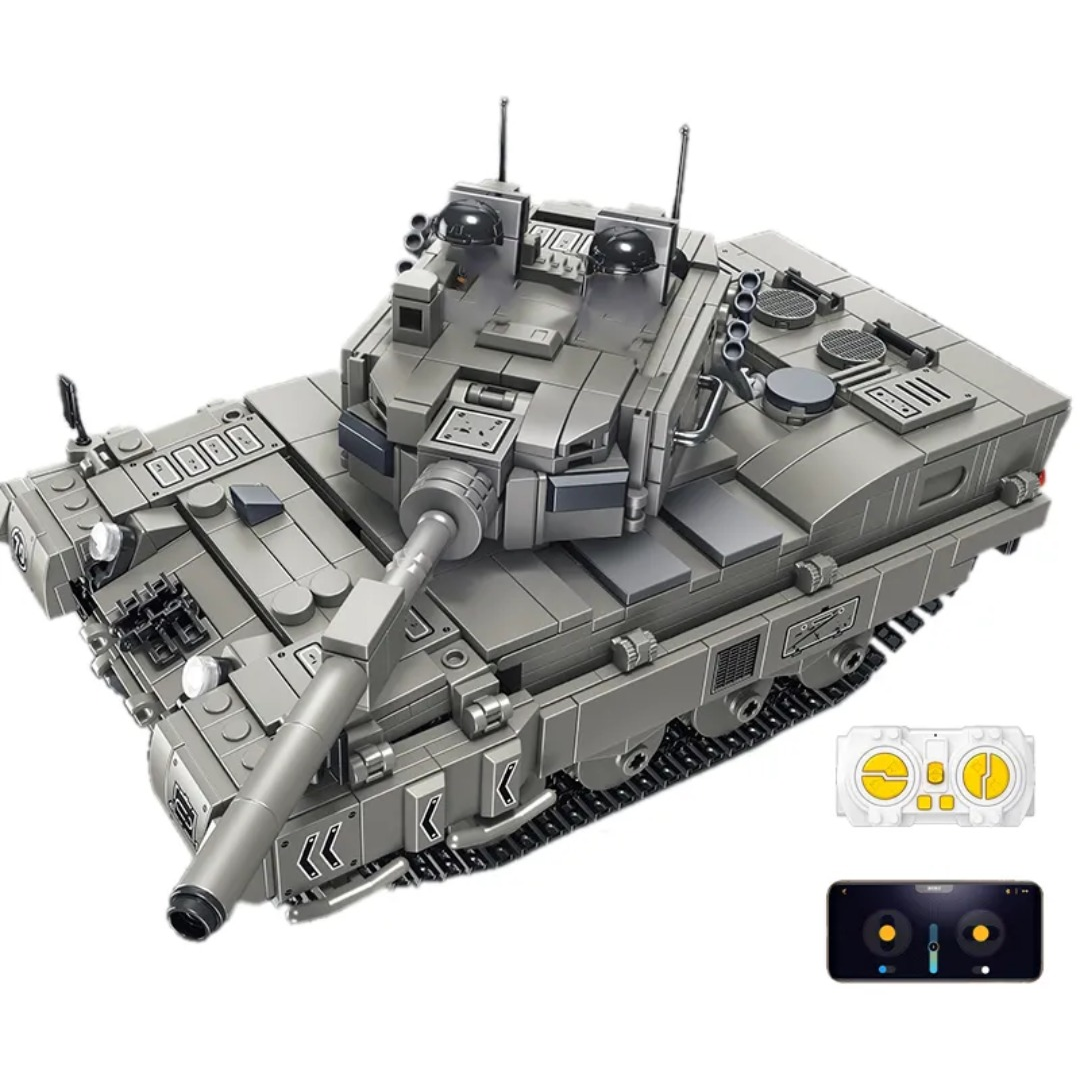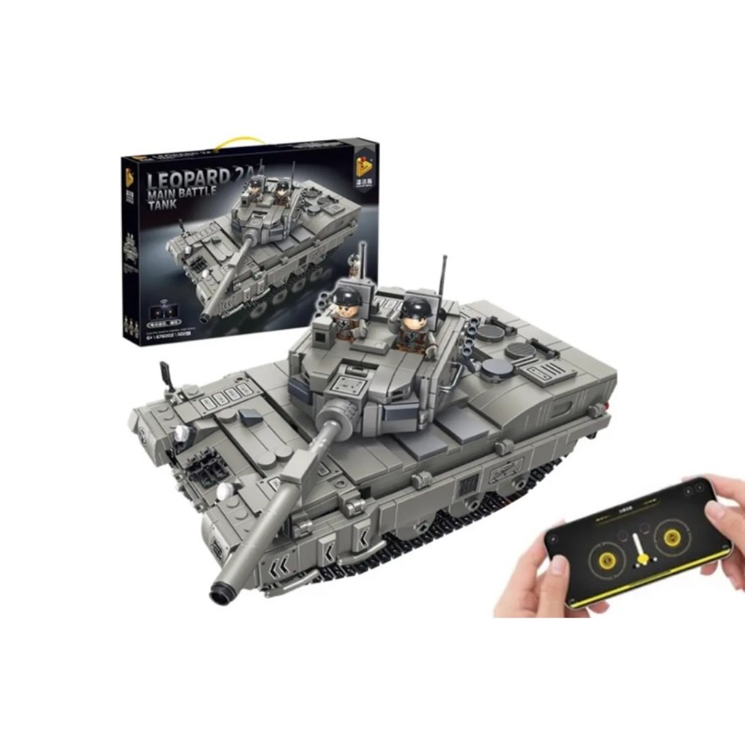 Детский конструктор представляет собой набор пластиковых блочных элементов для сборки модели боевого танка «Леопард» с дистанционным управлением. Набор включает 1122 детали, пульт дистанционного управления, аккумулятор и инструкцию по сборке. Готовую модель можно управлять с помощью пульта или через мобильное приложение по Bluetooth, что расширяет игровые возможности и позволяет контролировать движение техники. Сборка развивает творческое мышление, внимание, усидчивость и мелкую моторику.