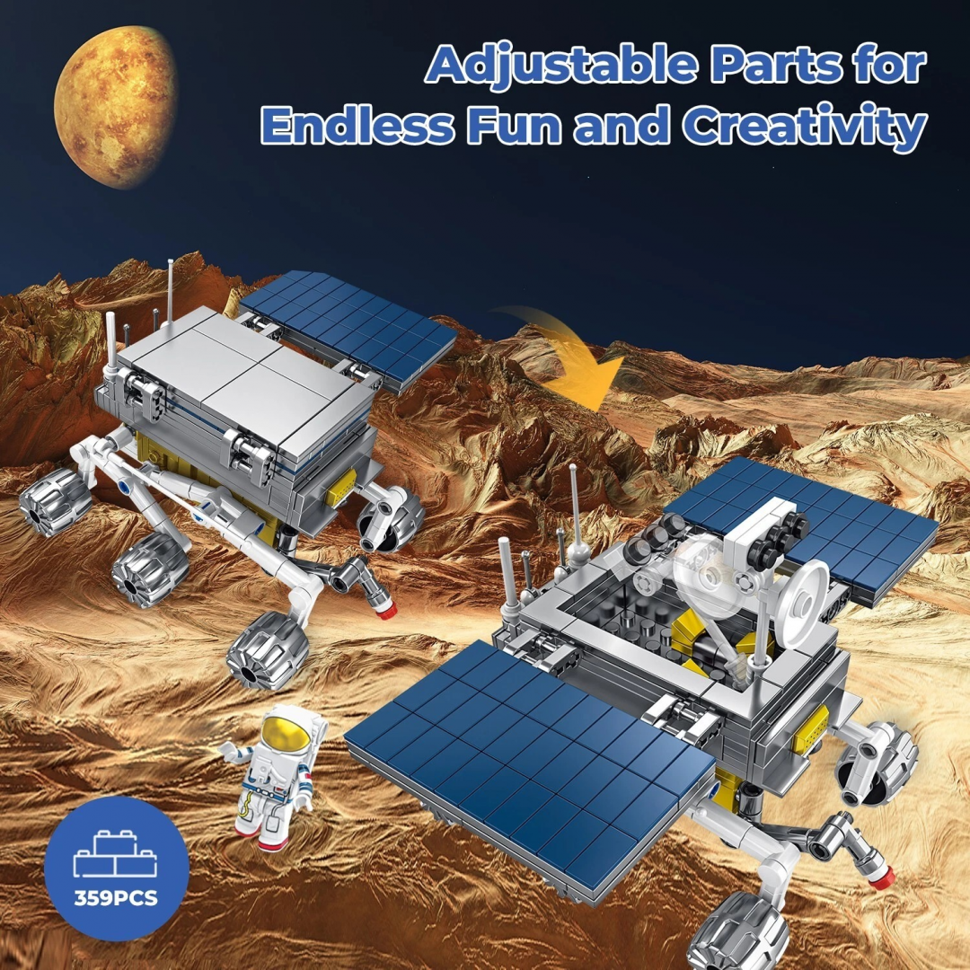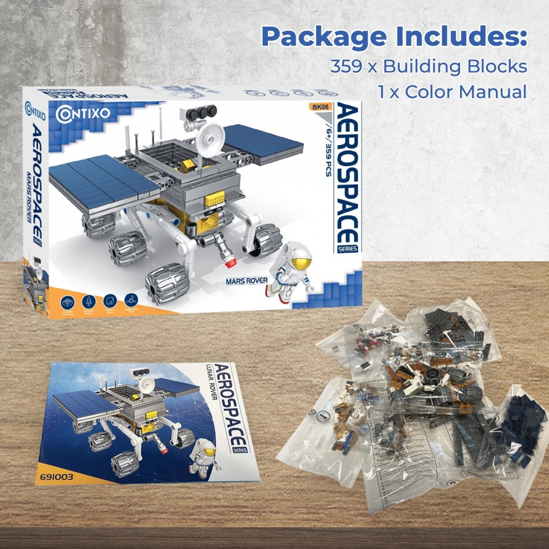 Детский конструктор представляет собой набор пластиковых блочных элементов для сборки модели марсохода — космического исследовательского ровера. Набор включает 359 элементов и инструкцию по сборке, позволяя получить трёхмерную модель ровера для игр или демонстрации. Сборка развивает творческое мышление, внимание и мелкую моторику и может быть использована в тематических играх о космических исследованиях.