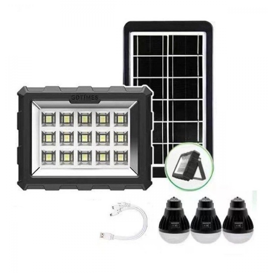 Портативная станция для зарядки GD 106, с солнечной панелью и 3 LED лампами