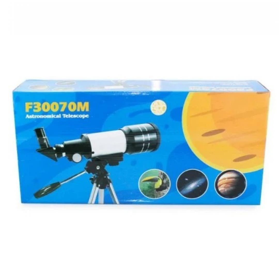 Телескоп AM F-70300 M — оптический прибор рефракторного типа, предназначенный для наблюдения за небесными и удалёнными наземными объектами. Модель оснащена объективом диаметром 70 мм и фокусным расстоянием 300 мм, что позволяет наблюдать Луну, яркие планеты и отдельные объекты на ночном небе.