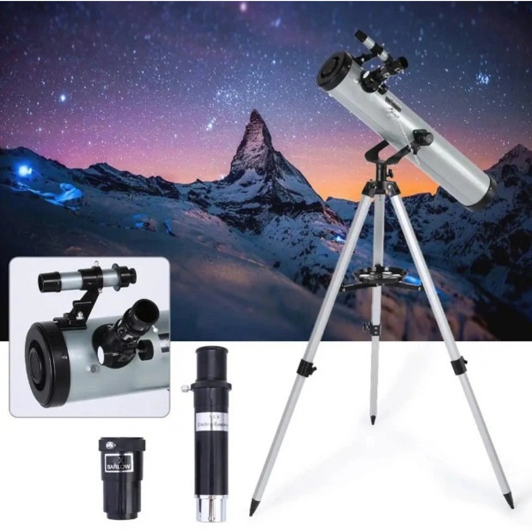 Телескоп F-70076 — астрономический прибор для наблюдения за объектами ночного неба и удалёнными наземными объектами. Модель оснащена зеркальной оптической системой и объективом диаметром 76 мм, что позволяет наблюдать Луну, планеты Солнечной системы и яркие звёздные скопления.