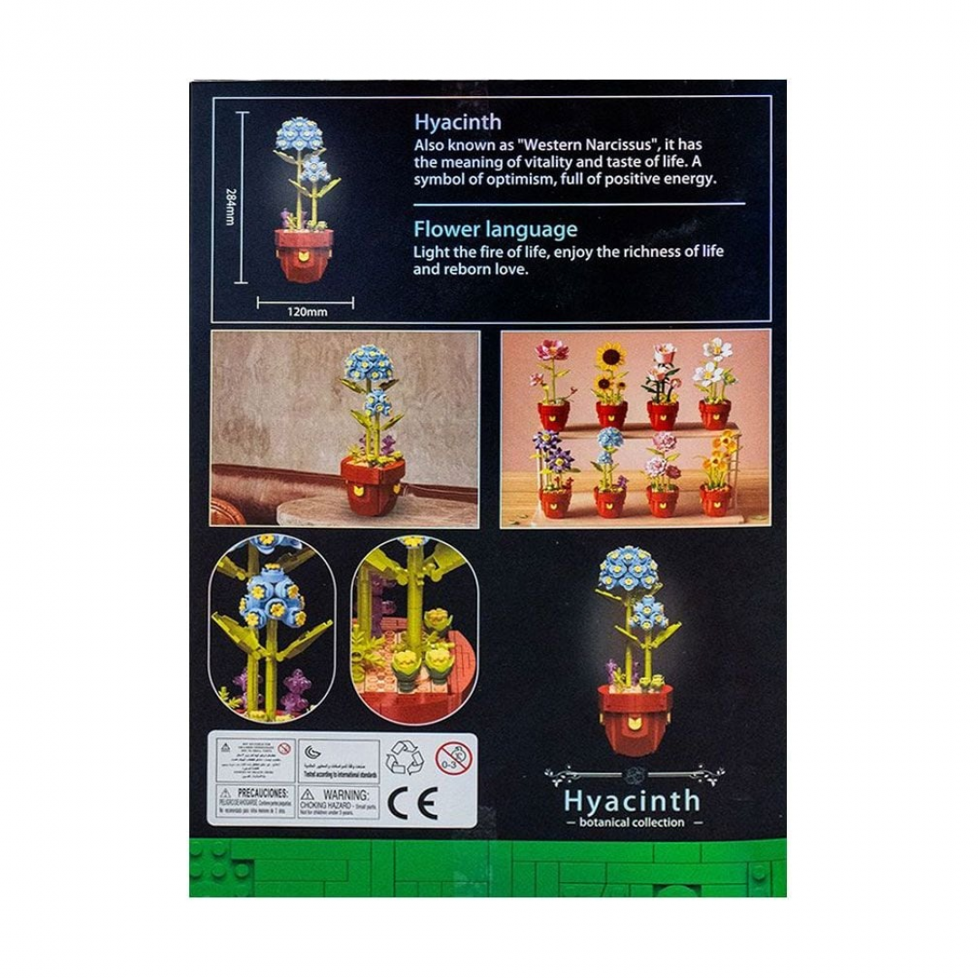 После сборки модель представляет собой настольную цветочную композицию. Детализированные элементы передают форму соцветий гиацинта и зелёных листьев, создавая аккуратную декоративную конструкцию. Набор подходит для самостоятельной сборки и может использоваться как элемент оформления интерьера.