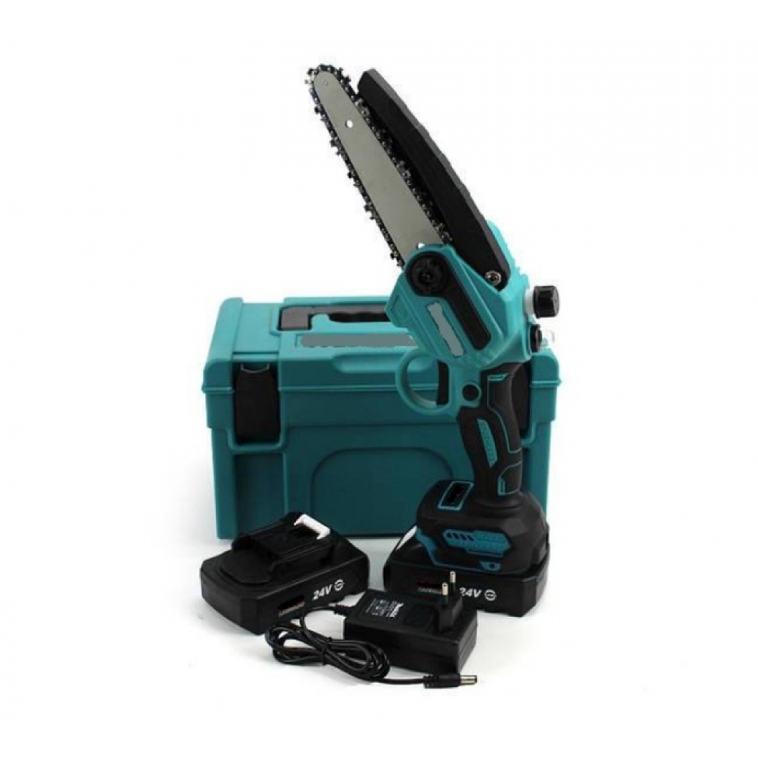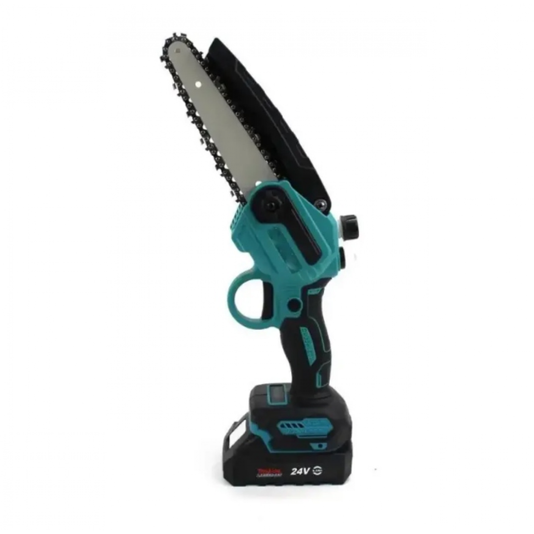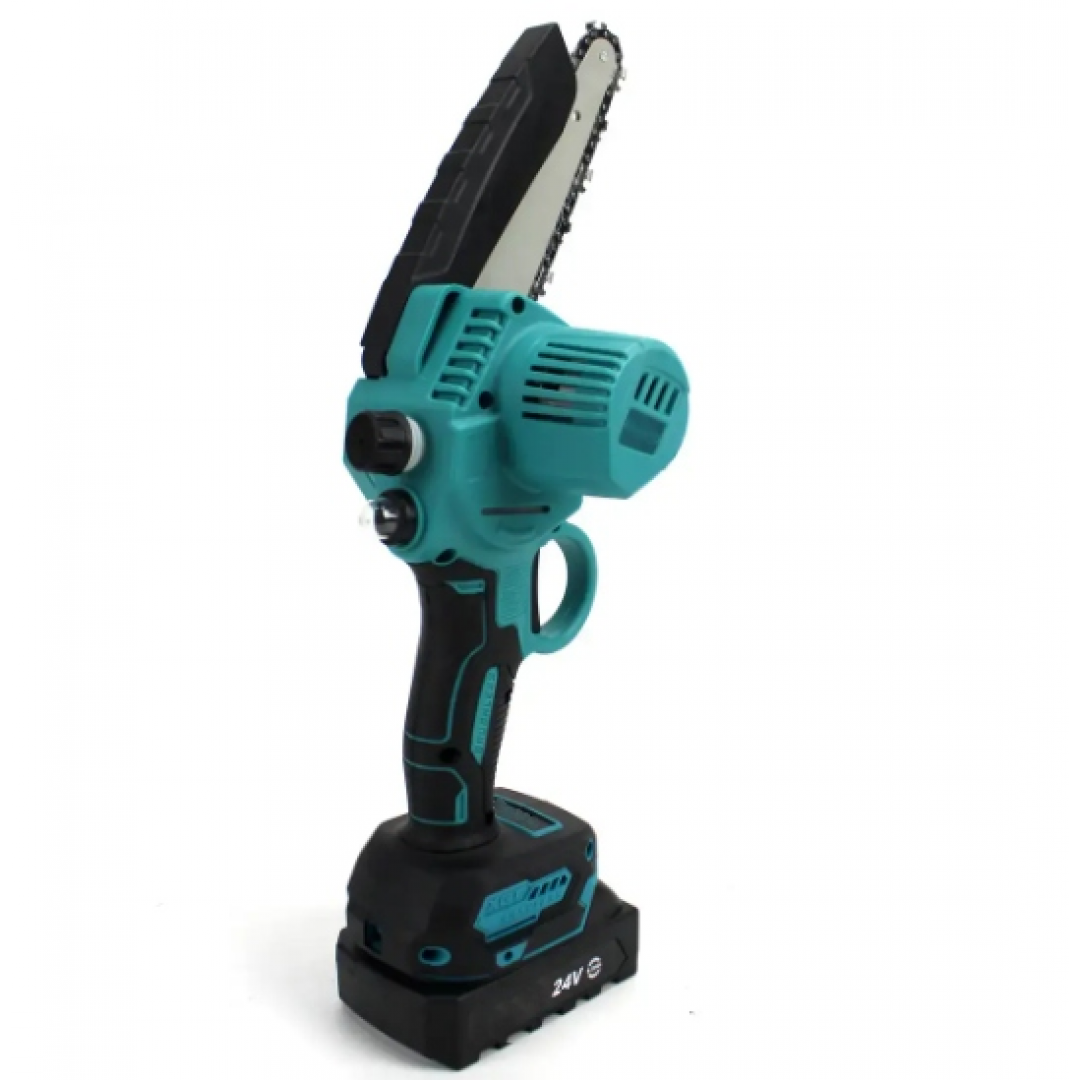 Пила работает от аккумуляторов напряжением 24 В и не требует подключения к электросети. Наличие автоматической системы смазки цепи способствует стабильной работе и снижает износ режущих элементов, а высокая скорость движения цепи обеспечивает эффективную и точную резку.