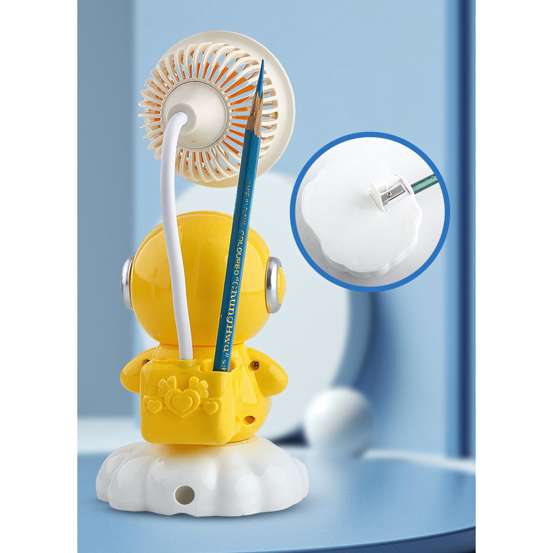 Вентилятор настольный Desktop Fan Y6, аккумуляторный, 3 режима, подсветка, гибкая ножка, с точилкой для карандашей, Type-C