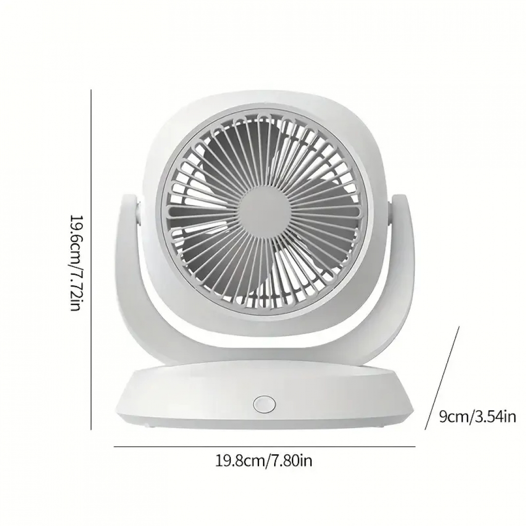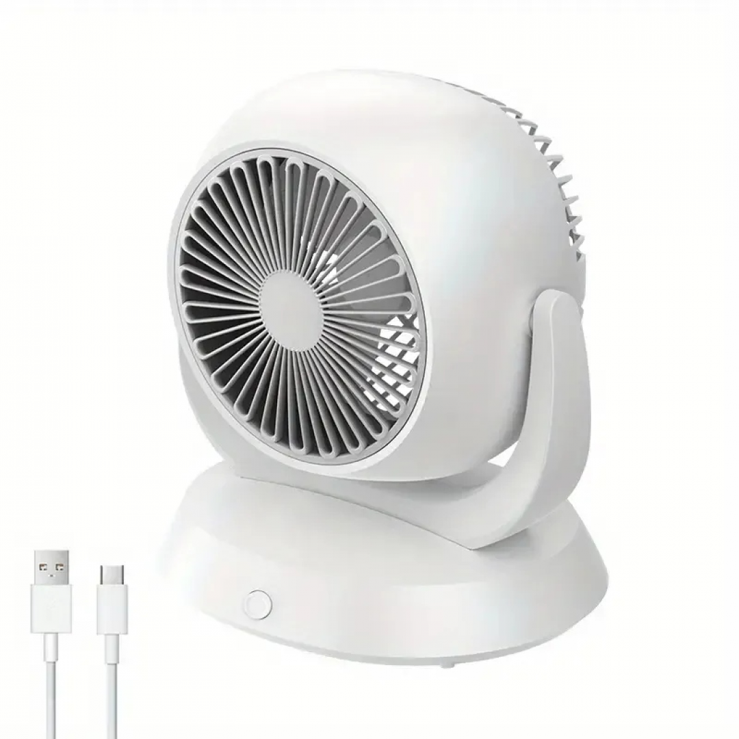 Компактный настольный вентилятор предназначен для создания направленного потока воздуха в помещении. Конструкция с поворотным механизмом позволяет изменять угол наклона, обеспечивая более точную настройку направления обдува. Устройство подходит для размещения на рабочем столе, прикроватной тумбе или в зоне отдыха.