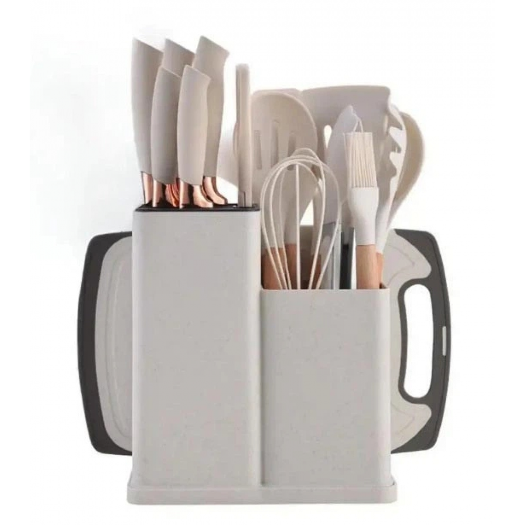 Набор кухонных принадлежностей Kitchenware Set 19 в 1 с ножами, ножницами и доской на подставке