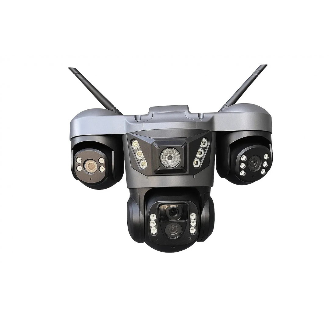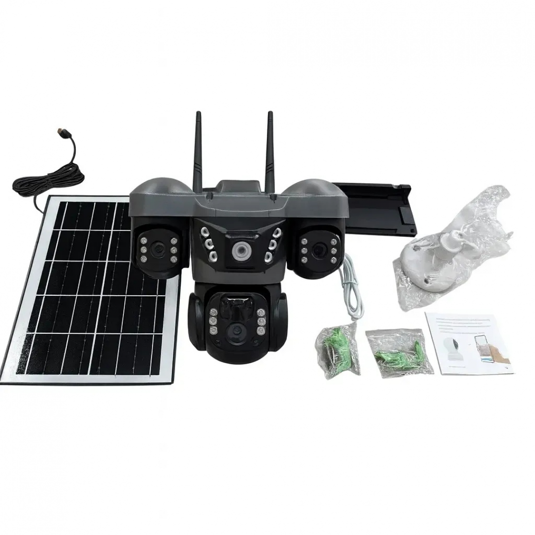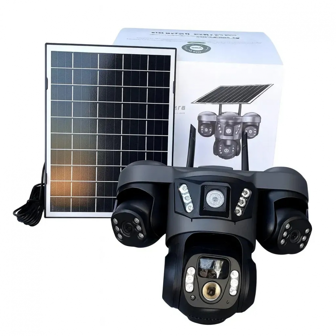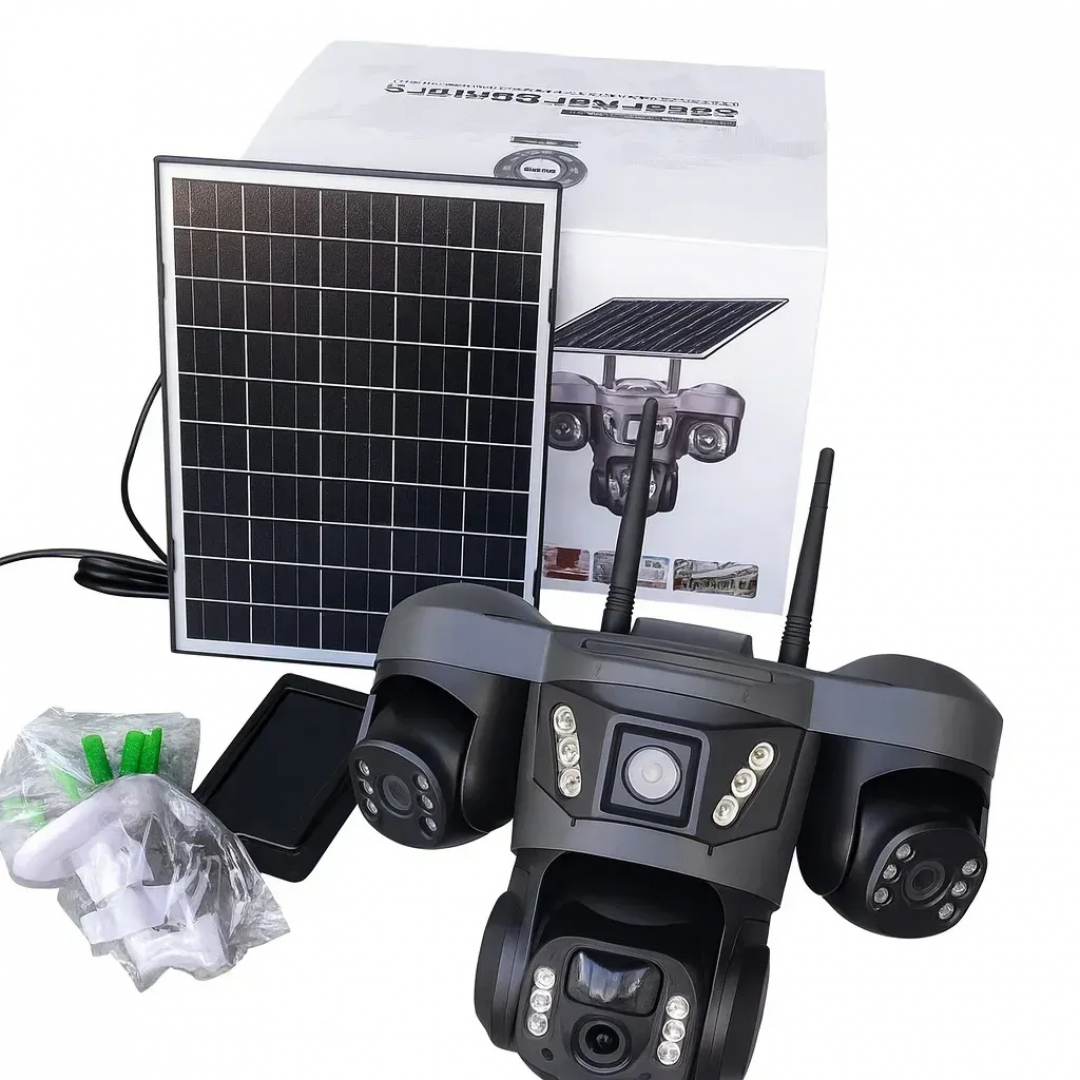 Камера видеонаблюдения на 3 линзы, 4G, с солнечной панелью, поворотная, до 5 Мп