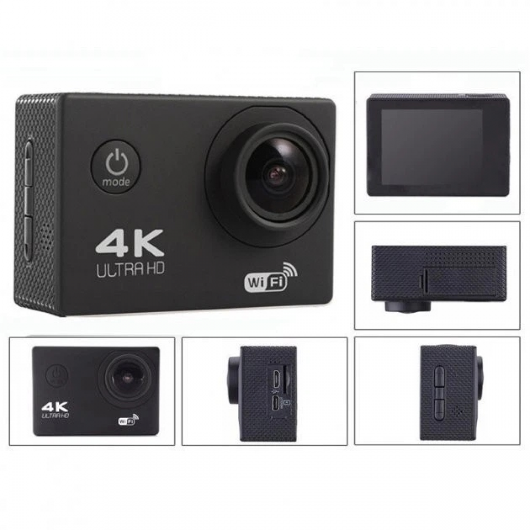 Модель оснащена Wi-Fi модулем для управления со смартфона, дисплеем для просмотра материалов и водонепроницаемым боксом для съёмки под водой. Поддержка циклической записи и возможность работы во время зарядки позволяют использовать камеру также как видеорегистратор.