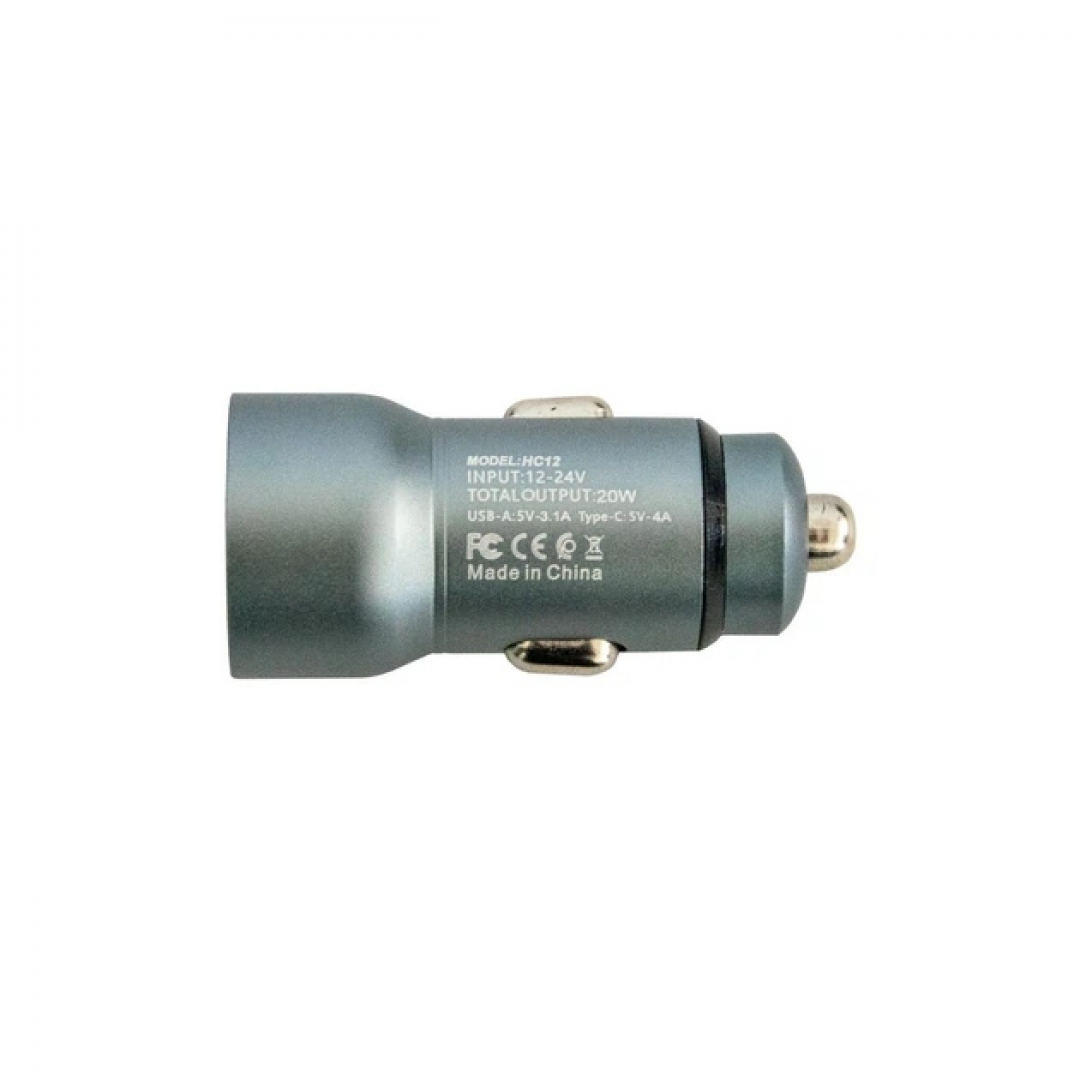 Автомобильное зарядное устройство HC12 предназначено для зарядки мобильных устройств через прикуриватель автомобиля. Оснащено двумя разъёмами — USB и Type-C, что позволяет подключать современные гаджеты различных типов.