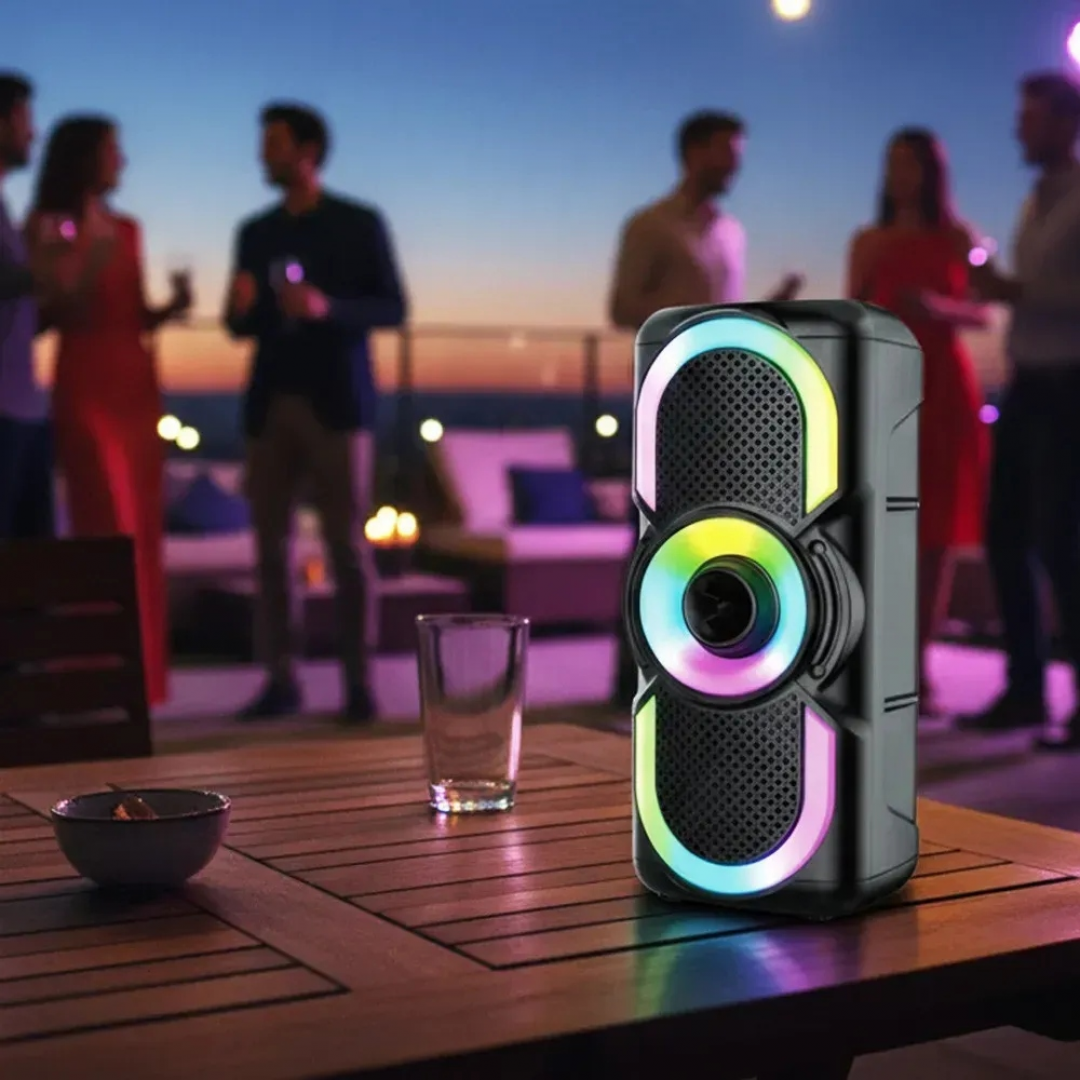 Портативная колонка E‑4203 BT предназначена для воспроизведения аудио с мобильных устройств, компьютеров и других источников звука по беспроводному соединению Bluetooth. Устройство оснащено RGB‑подсветкой, которая создаёт динамическую атмосферу во время воспроизведения музыки.