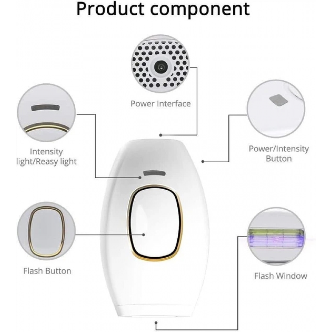 Портативный фотоэпилятор IPL Hair Removal Device предназначен для удаления нежелательных волос методом интенсивного импульсного света (IPL). Устройство обеспечивает обработку волос на теле и в зоне бикини с помощью световых импульсов, которые воздействуют на волосяные фолликулы, ослабляя их рост при регулярном применении.