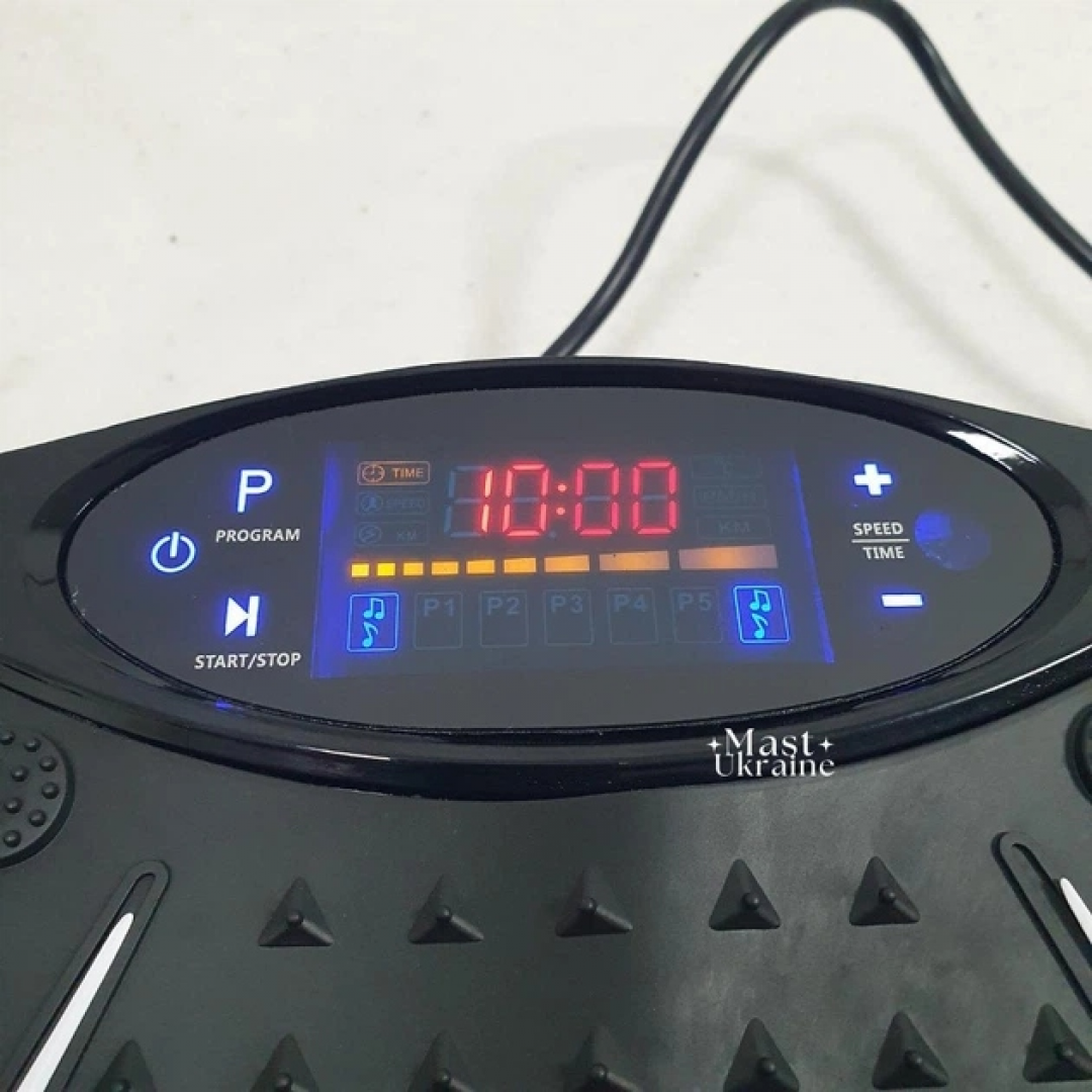 Модель оснащена дисплеем для отображения режимов и времени тренировки, а также дистанционным пультом для удобства управления. Виброплатформа подходит для домашних занятий и может использоваться в качестве дополнения к основной физической активности.