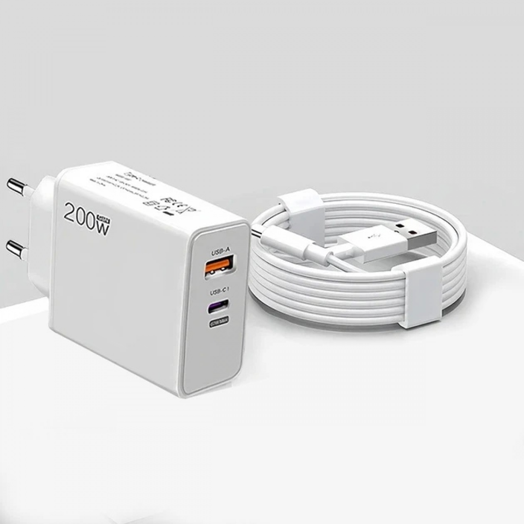 Сетевое зарядное устройство 200W с USB-C и USB-A, кабель Type-C