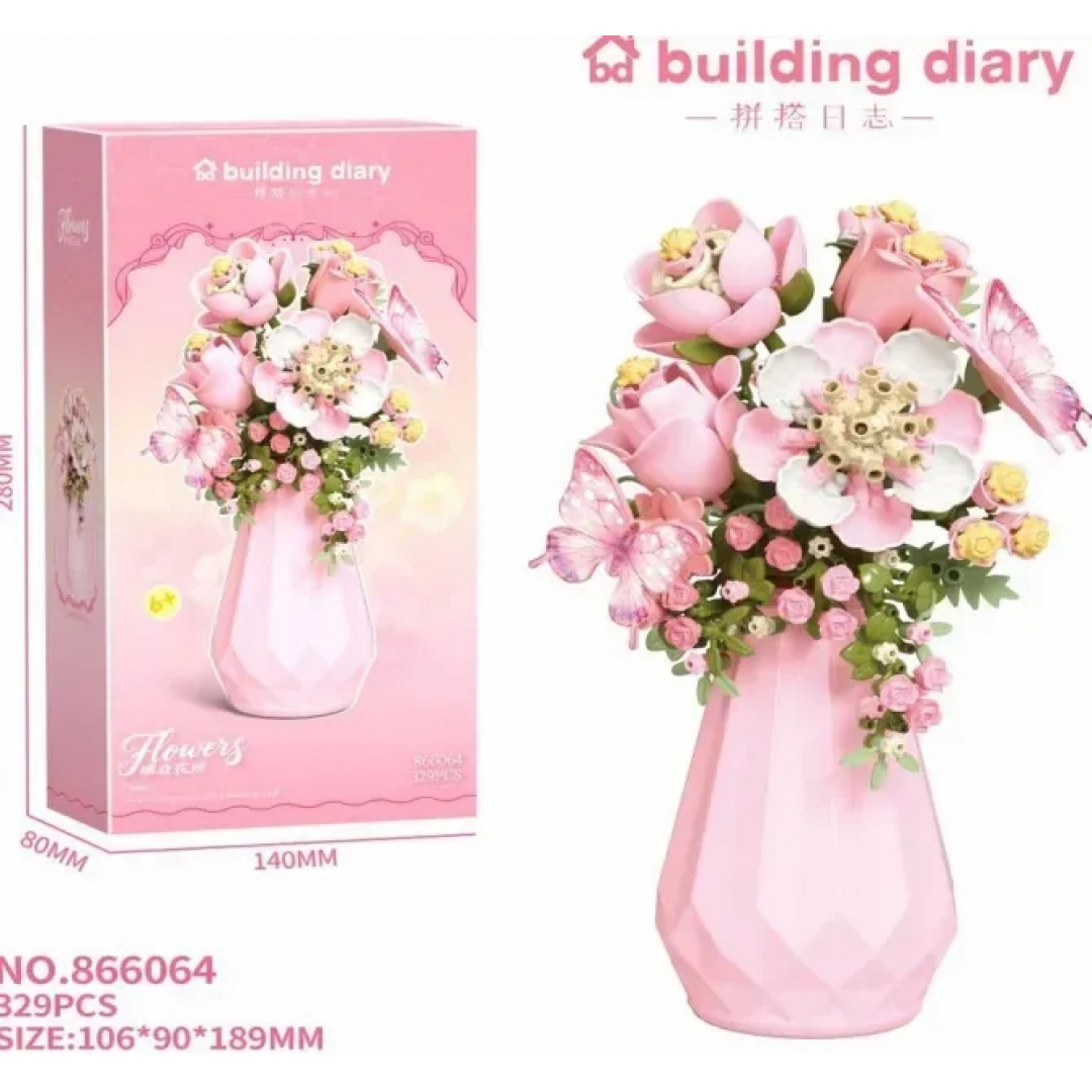Конструктор «Бабочки в цветах», розовая ваза, 329 деталей