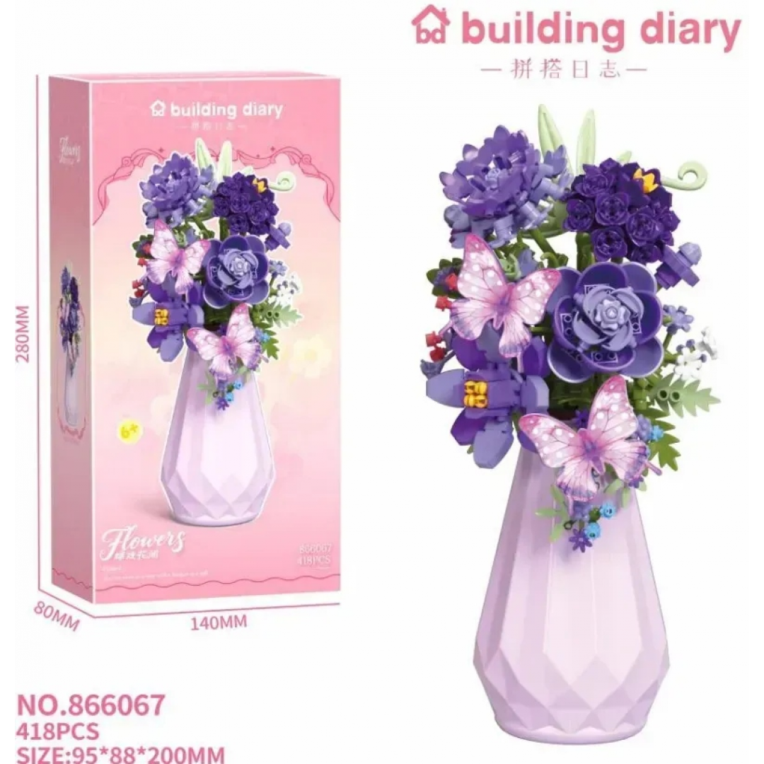 Конструктор «Бабочки в цветах», 866067, фиолетовая ваза, 418 деталей