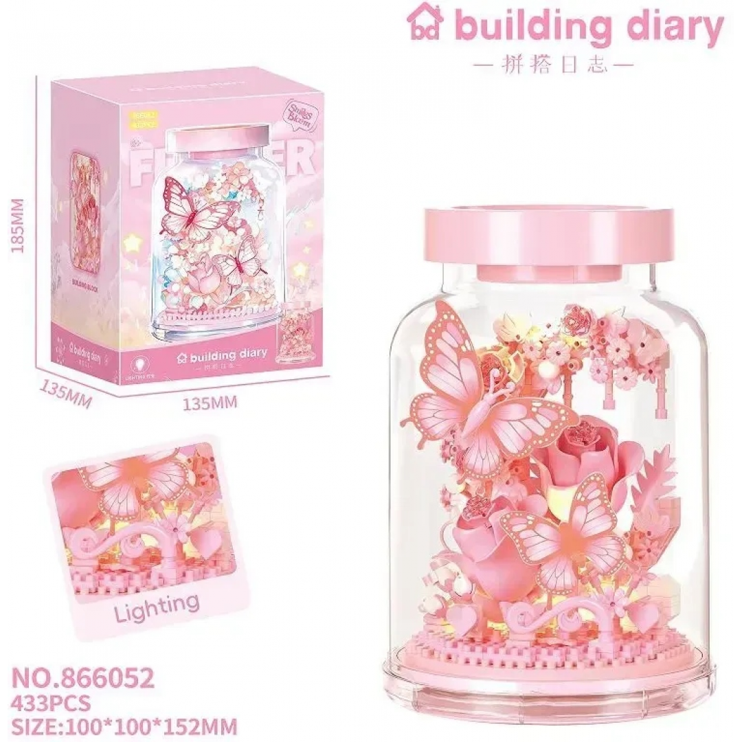 Конструктор «Розовые бабочки и цветы», 866052, с подсветкой, 433 детали