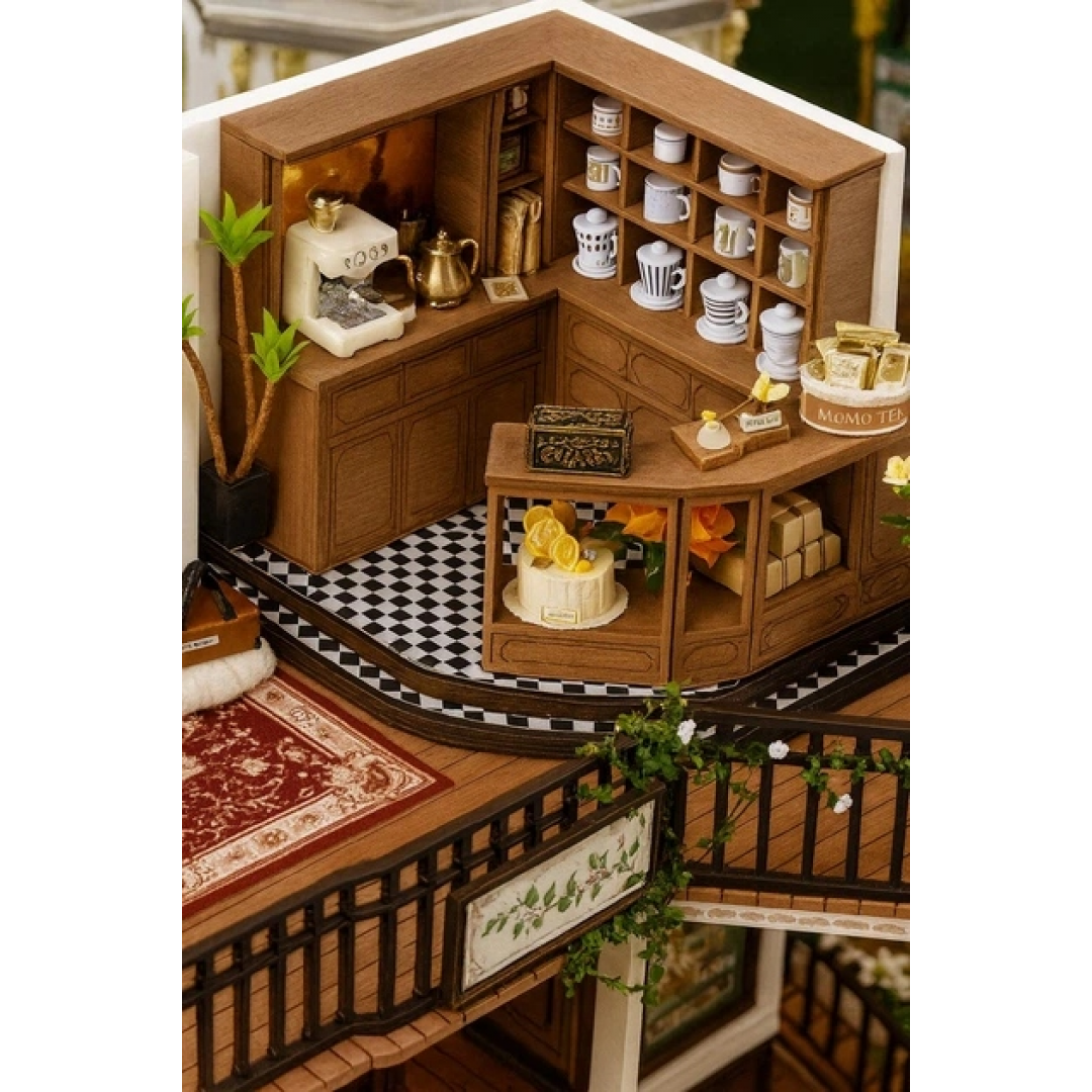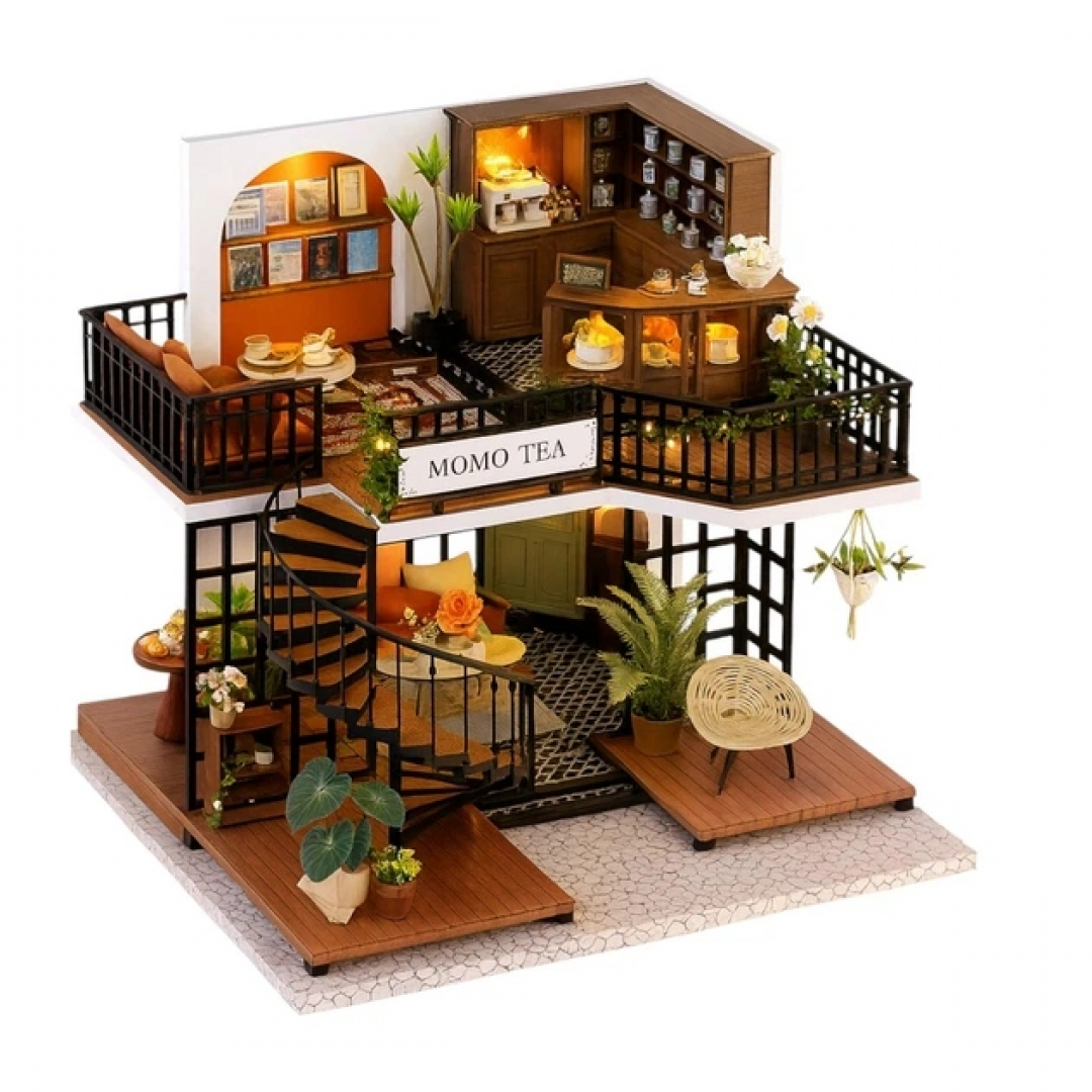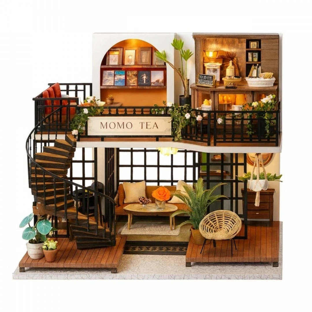 Румбокс «Чайный магазин» — это детализированный 3D-конструктор для самостоятельной сборки миниатюрного интерьера уютной чайной лавки. После сборки получается декоративная композиция с мебелью, аксессуарами и LED-подсветкой, закрытая прозрачным защитным куполом.
