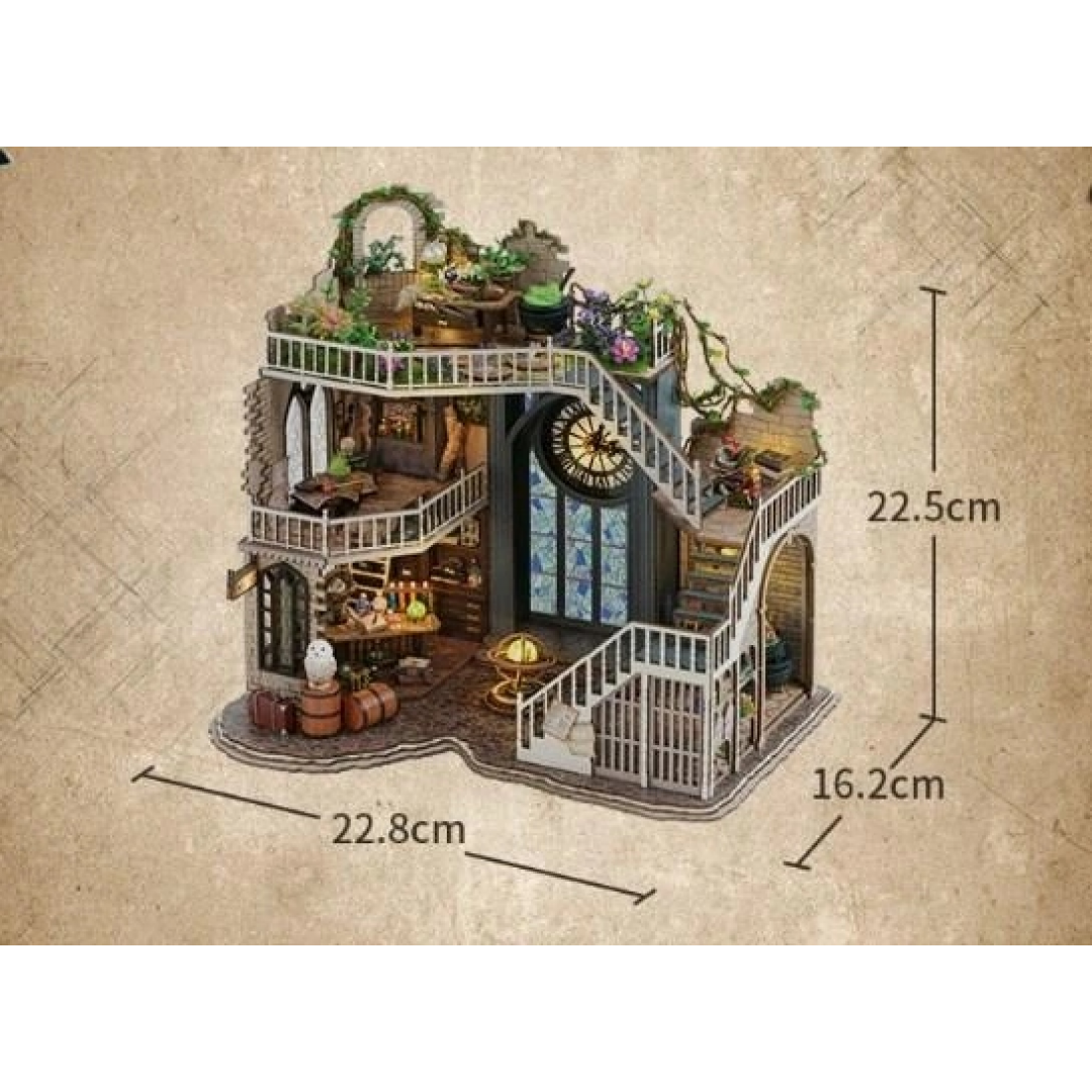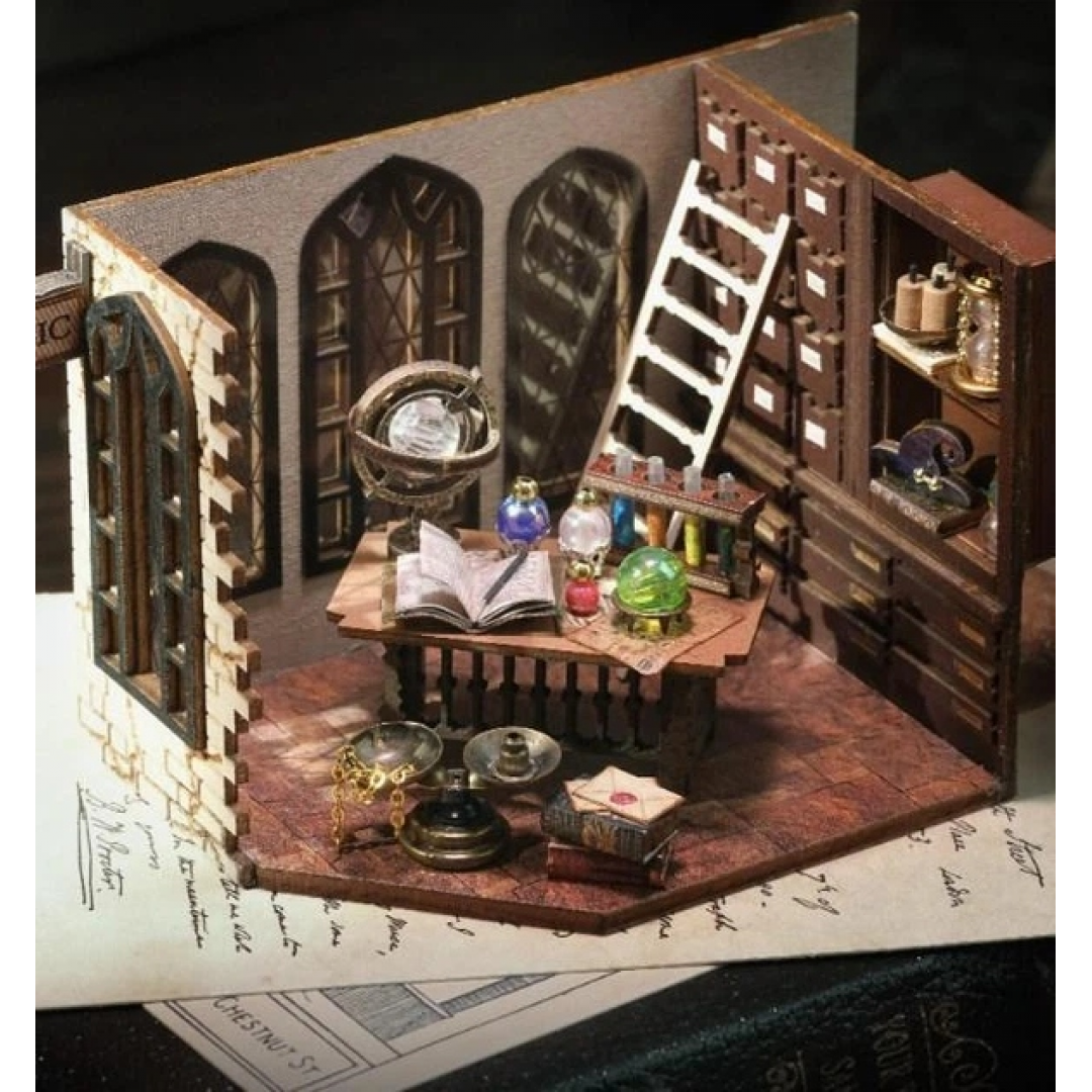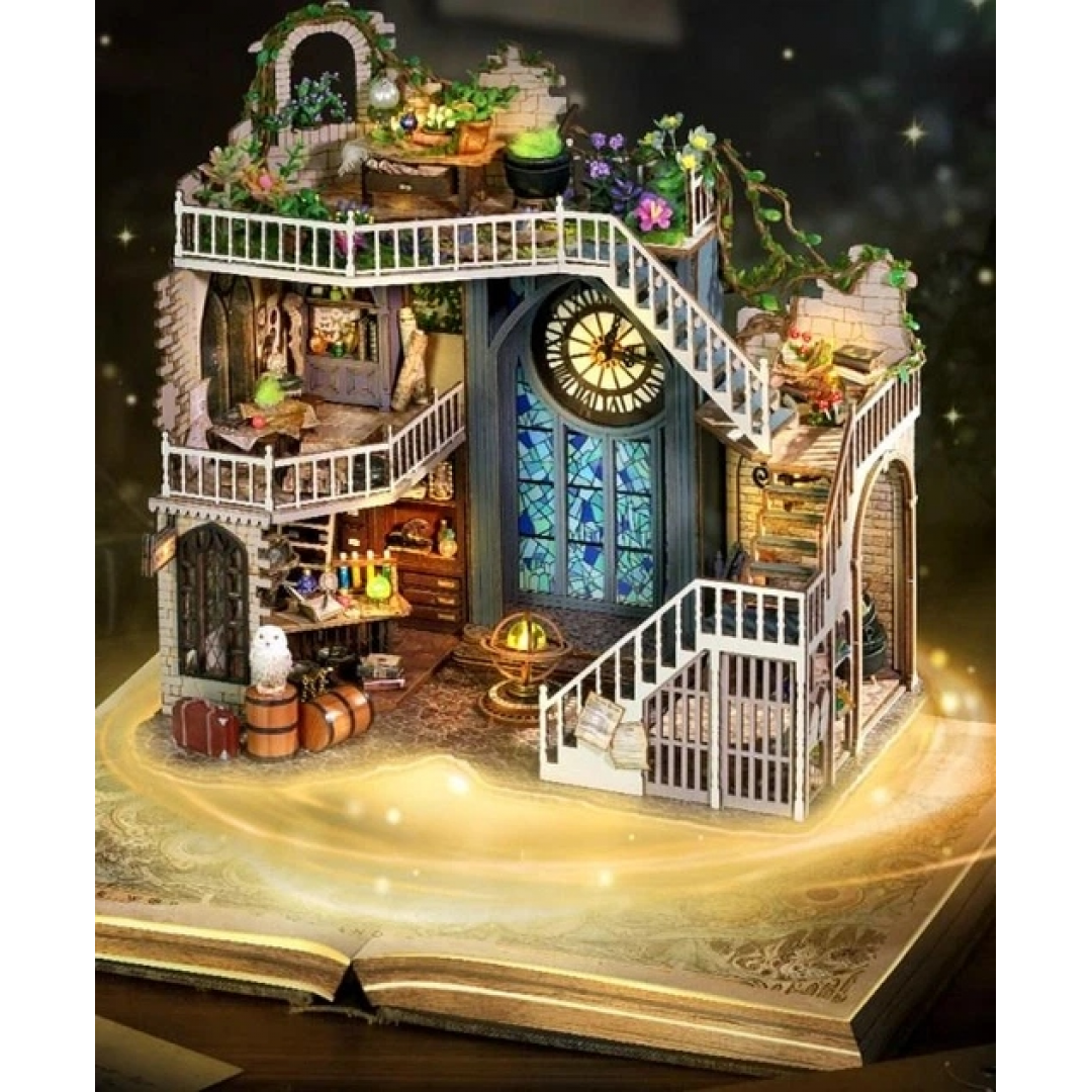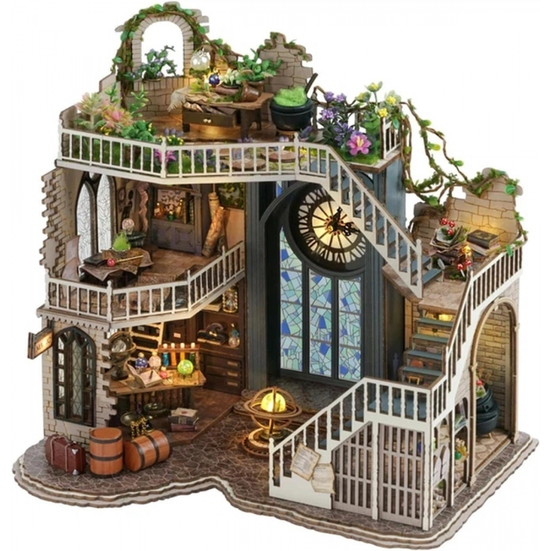 Румбокс «Волшебный дом» представляет собой детализированную интерьерную миниатюру, выполненную в виде уютного домика с элементами декора, меблировкой и аксессуарами. После сборки модель помещается под прозрачный защитный купол, что обеспечивает её сохранность и визуальную презентацию.