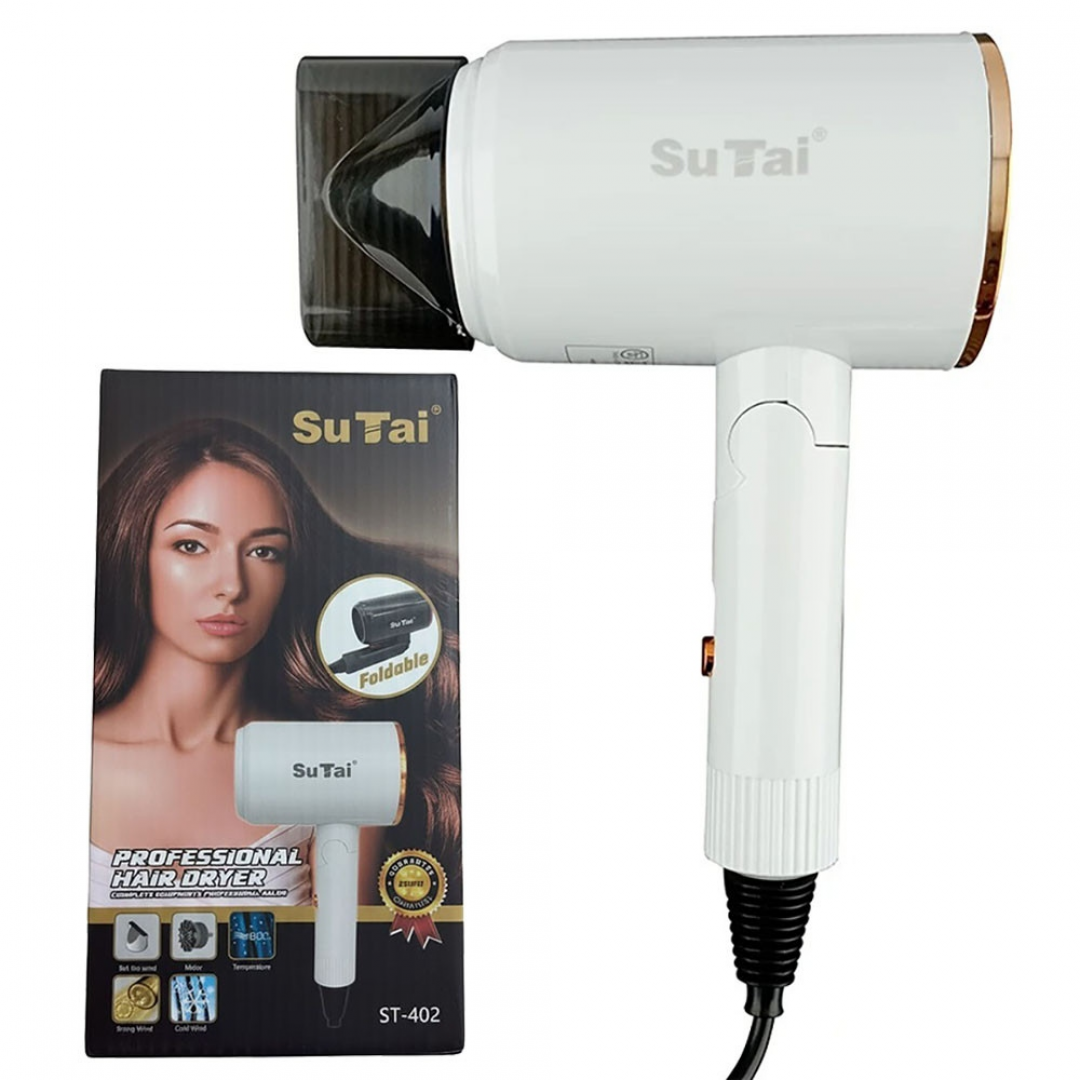 Фен для укладки волос Sutai ST-402, складной, 2000 Вт, 2 скорости, с насадкой